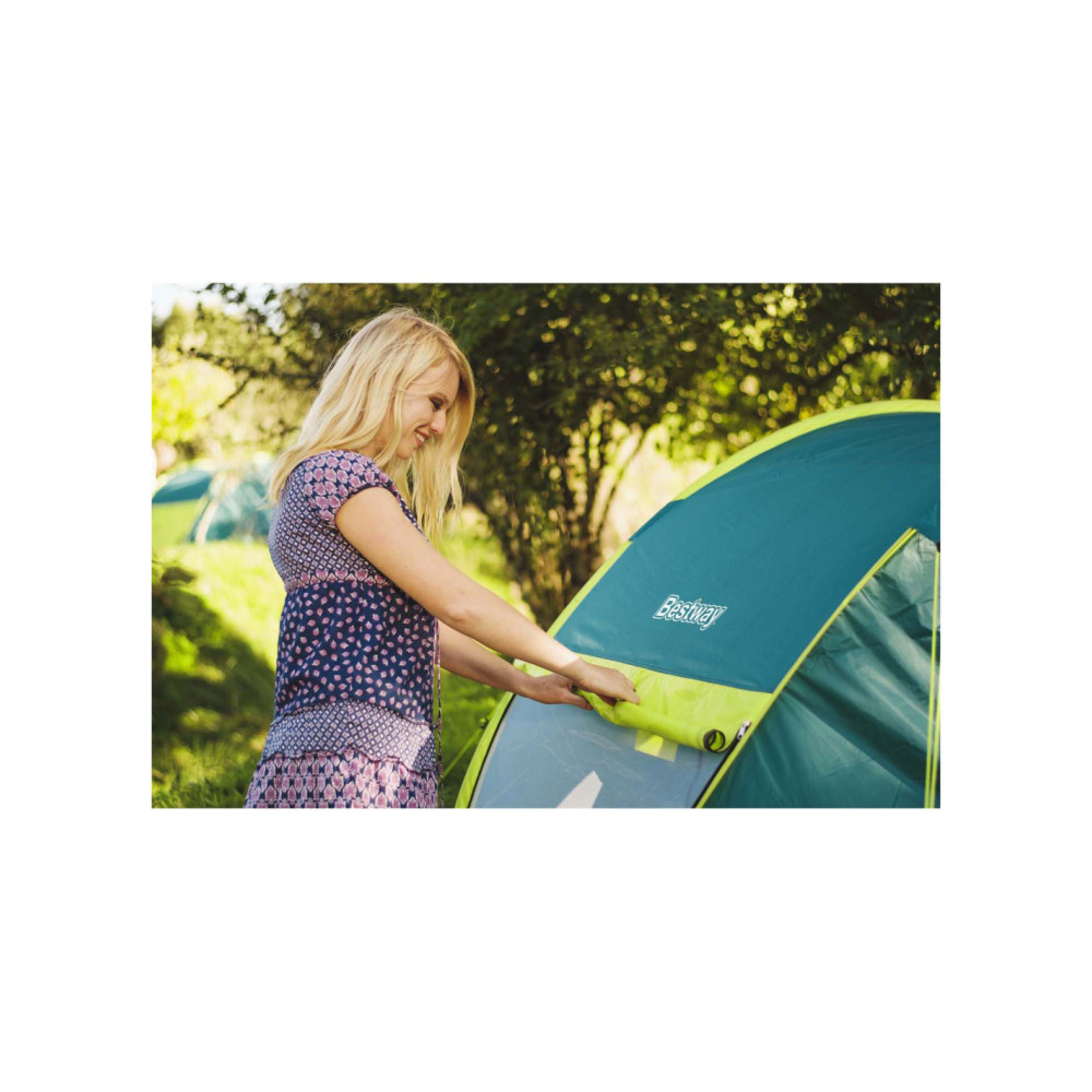 De Bestway Cool Mount 4 Tent is perfect om dag en nacht van de natuur te genieten. De compacte grootte is geweldig voor maximaal 4 personen of u nu gaat kamperen, op een festival bent of wilt ontspannen op het strand. De Cool Mount 4 is een must-have accessoire om te sterrenkijken in uw achtertuin, of voor een wandelweekend, en is compact genoeg om in de koffer van uw auto te passen of aan uw wandelrugzak te bevestigen. Deze handige tent is snel en gemakkelijk op te zetten, wat slechts 3 minuten in beslag neemt, en het komt met een grondbeschermlaag om de tent te beschermen tegen vochtigheid, water en andere elementen. Het heeft ook een insectennet; het ademende gaas houdt insecten buiten en laat de koele frisse lucht binnen. Daarboven, heeft de tent een constructie met enkele laag, één ingang en 2 zijramen om dag en nacht voldoende ventilatie toe te laten. Bovendien is er een binnenzak voor extra opslagruimte! De Bestway Cool Mount 4 Tent komt met een eigen draagtas, waardoor het voor iedereen de perfecte oplossing is voor onderweg.