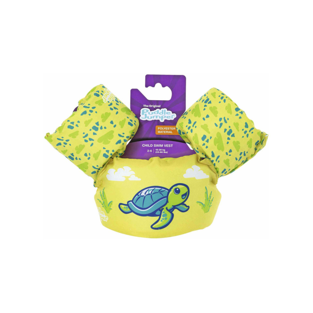 Beleef een zomer vol spetterende glimlachjes met het Puddle Jumper Kinderzwemvest! Help uw kind, 15-30 kg (33-66 lbs), om zelfvertrouwen in het water te ontwikkelen in dit helder zwemvest met een leuke, fantasierijke opdruk van schildpadden.Beoordeeld & Getest:Het Puddle Jumper Kinderzwemvest is gemaakt van kindervriendelijk, glad en sterk polyester materiaal en heeft ingebouwde schuimen kussentjes die getest zijn voor drijfkracht en duurzaamheid.Veilige Pasvorm:Het zwemvest heeft gespen aan de rug waar ze niet bij kunnen, en een verstelbare riem om het goed te laten aansluiten zodat kinderen veilig blijven terwijl ze de hele dag lang spetteren. Of dit nu hun eerste keer in het water is of ze peddel-professionals zijn, het Puddle Jumper kinderzwemvest zal hun de hele zomer lang comfortabel houden.