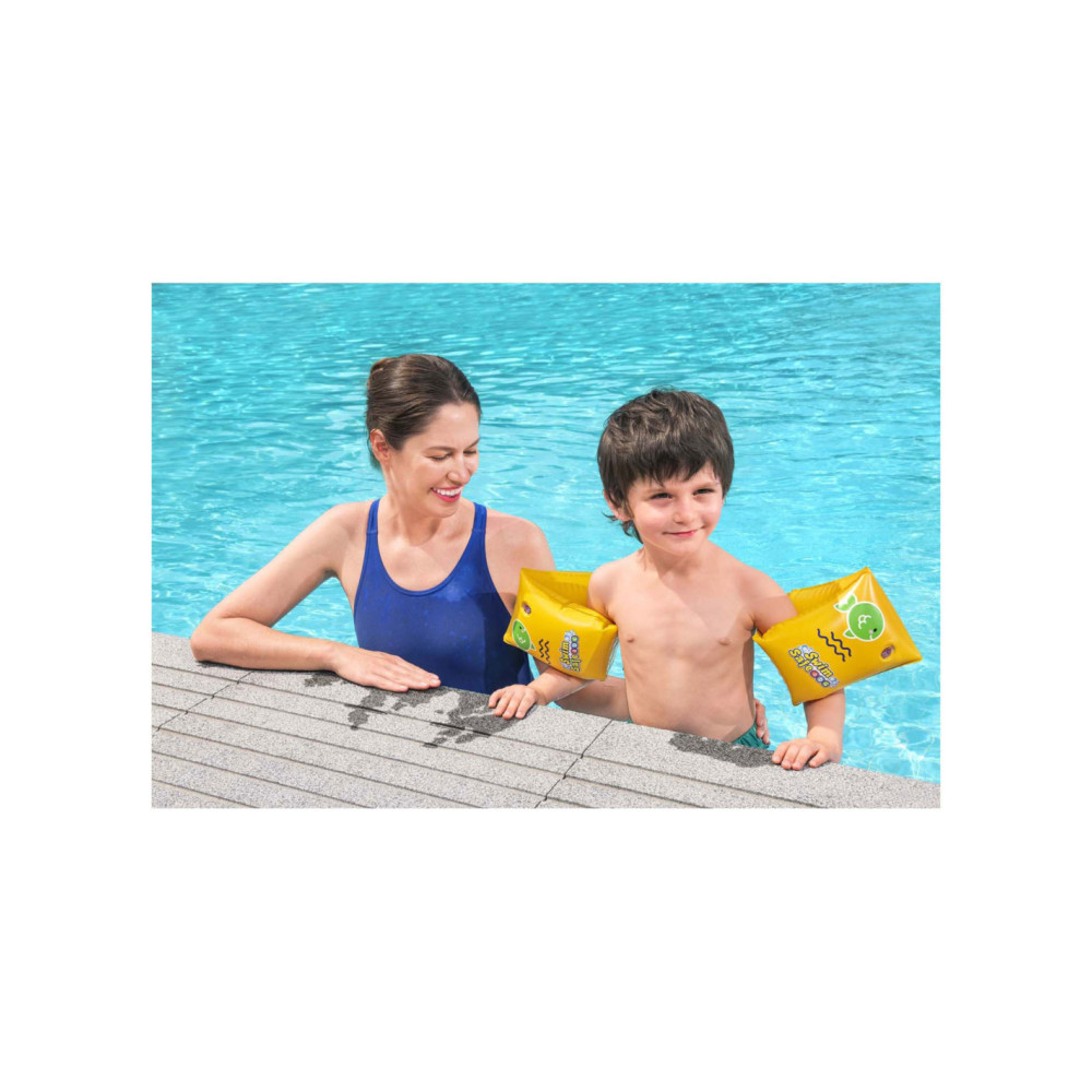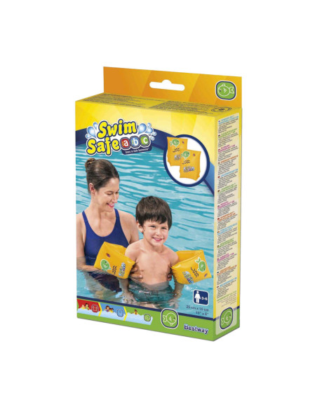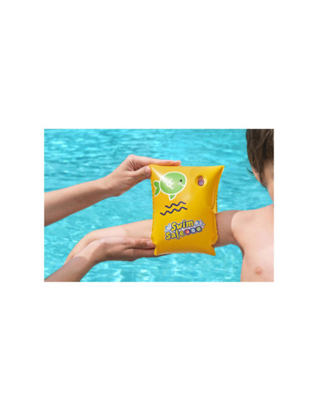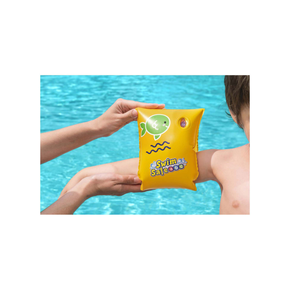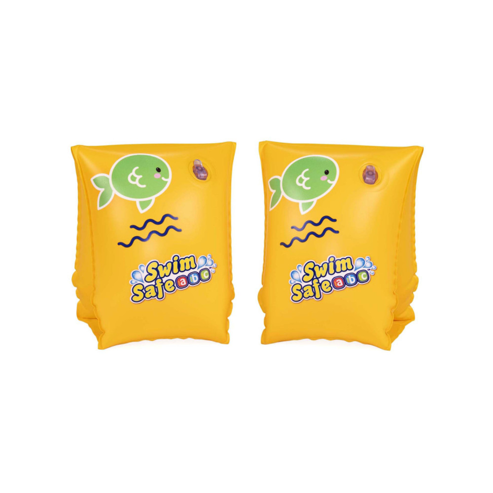 Geef uw kind een boost van zelfvertrouwen in het water met de Swim Safe ABC WonderSplash Opblaasbare Zwemarmbanden S/M!Stap C zwemarmbanden geven kinderen van 3-6 jaar een boost van zelfvertrouwen terwijl ze drijven en hun zwemvaardigheden oefenen in deze flexibele, maar knusse zwembandjes voor beginners. De zwemarmbanden hebben een dubbele luchtkamer voor extra veiligheid en drijfvermogen, zodat uw kind zich veilig kan voelen terwijl het zich comfortabeler voelt in het water.Het Swim Safe ABC stap voor stap programma begint met de stap A producten. Deze zijn voor baby's en peuters die maximale ondersteuning nodig hebben. Stap B zwemvesten zijn voor peuters die zelfvertrouwen beginnen te krijgen, maar nog niet zelfstandig kunnen zwemmen. Stap C zwemarmbanden zijn voor kinderen die de basisprincipes van zwemmen beginnen te leren.Met een helder, opvallend gele kleur en het moeiteloos opblazen en leeglopen, zijn de Swim Safe ABC WonderSplash Zwemarmbanden gemakkelijk op te bergen voor de volgende speeldag van uw kind!