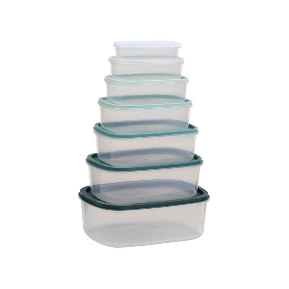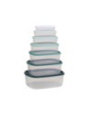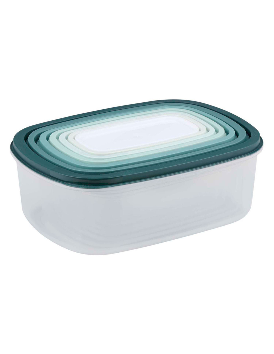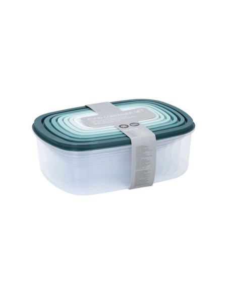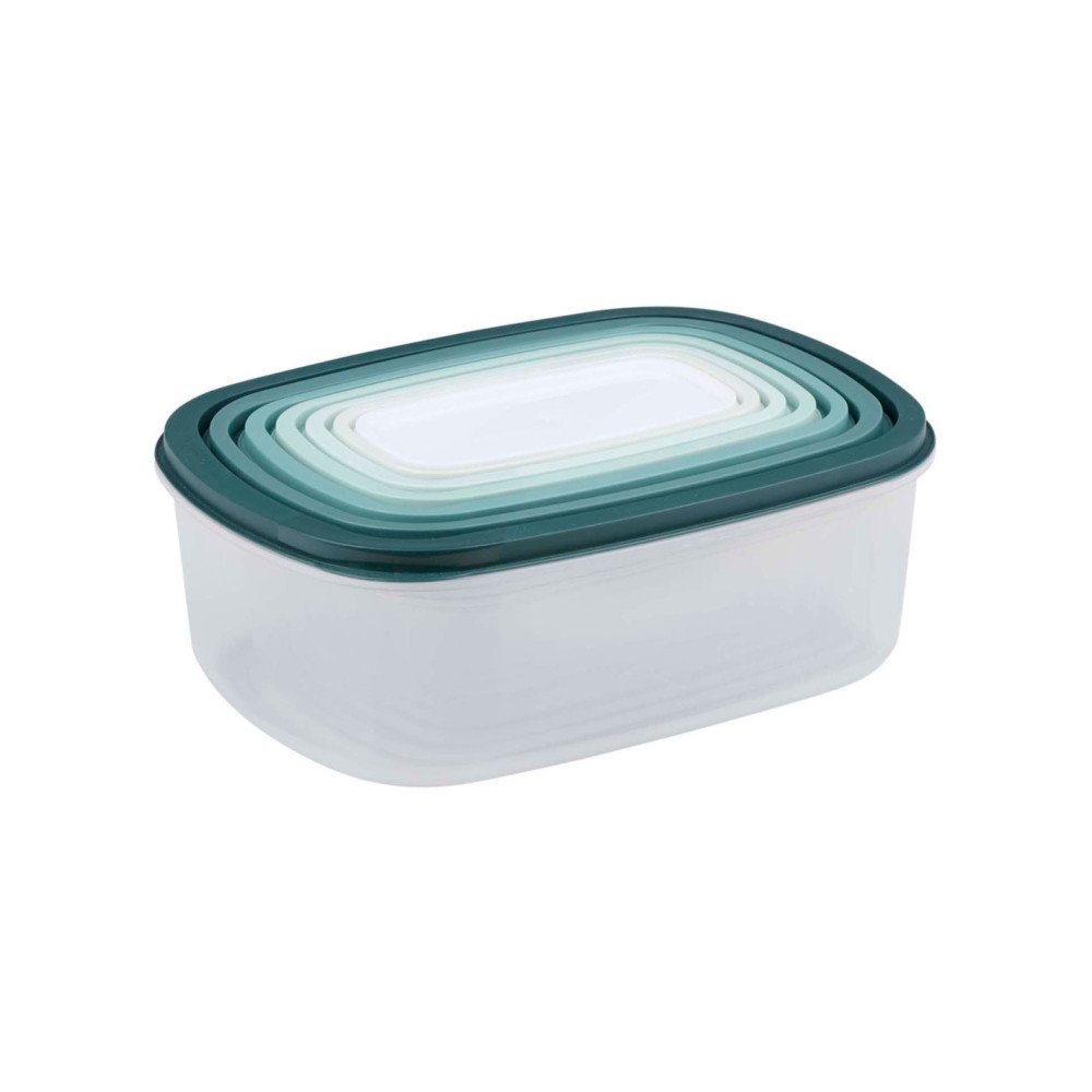 Complete set van 6 voedselcontainers in diverse groentinten. Ideaal voor het organiseren van uw koelkast of keuken. De verschillende maten passen netjes in elkaar voor eenvoudige opslag.