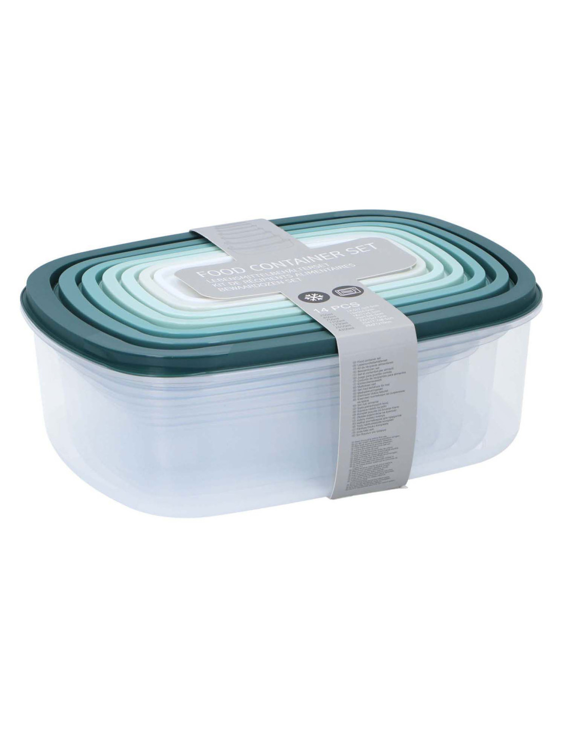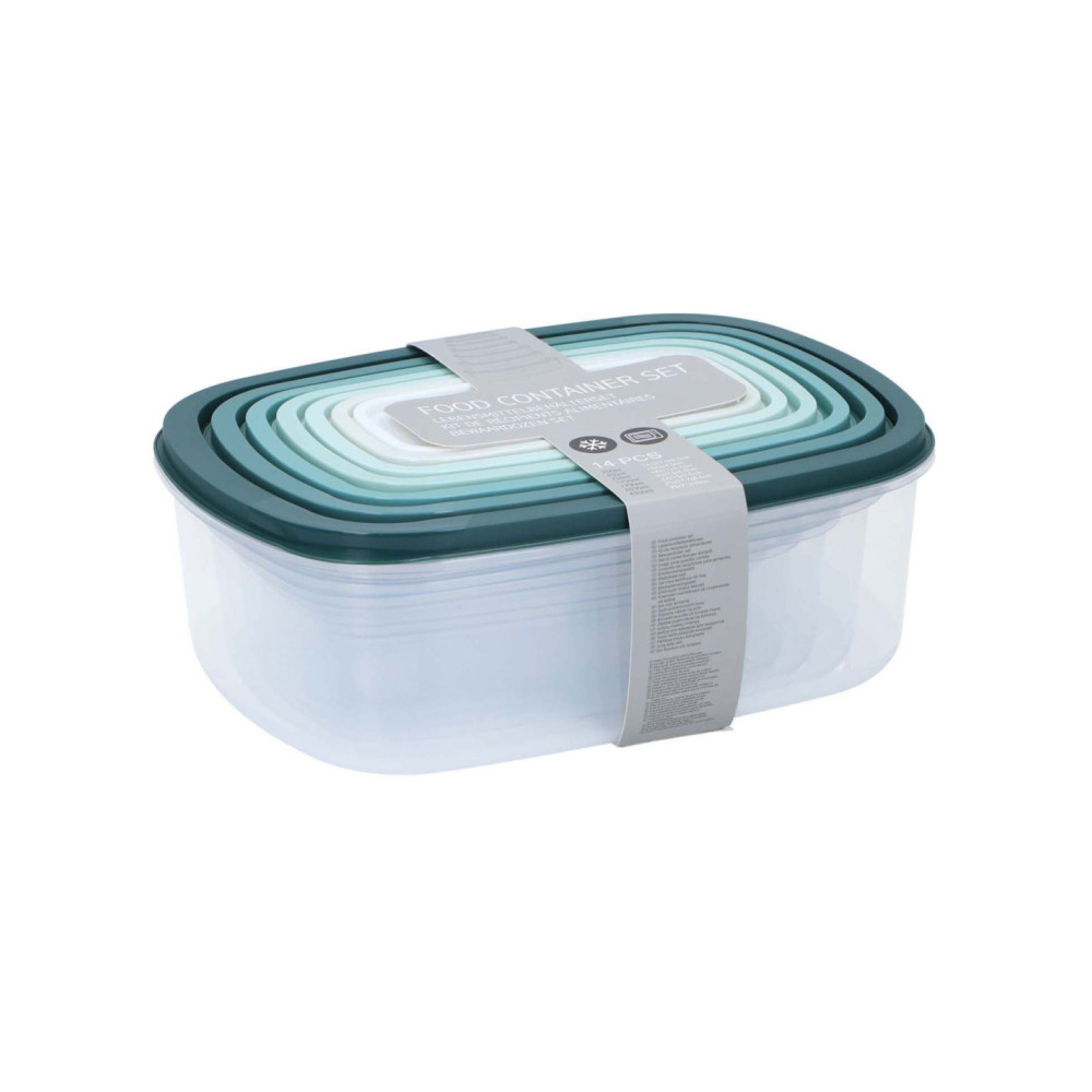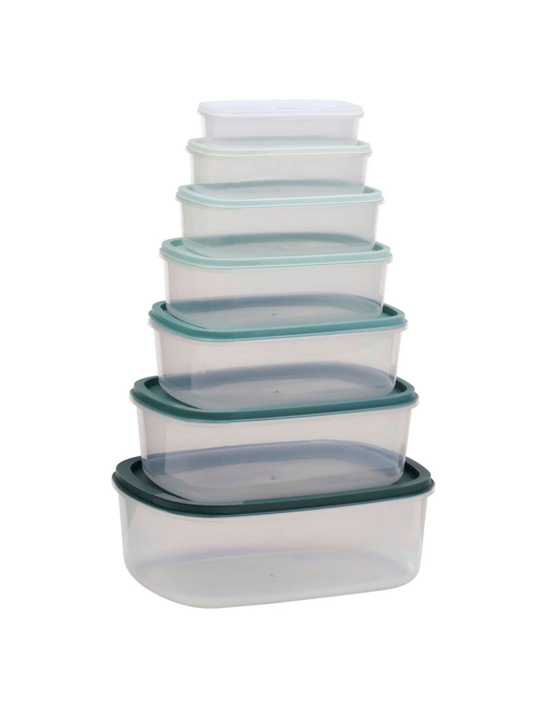 Complete set van 6 voedselcontainers in diverse groentinten. Ideaal voor het organiseren van uw koelkast of keuken. De verschillende maten passen netjes in elkaar voor eenvoudige opslag.