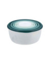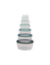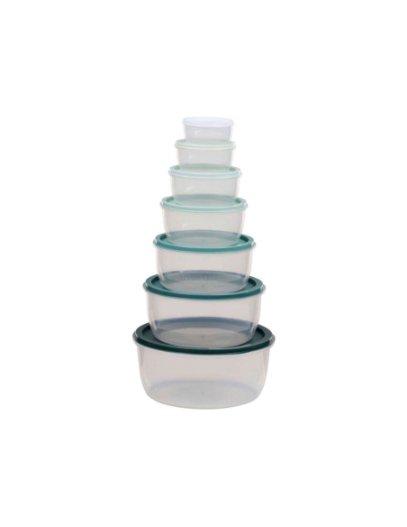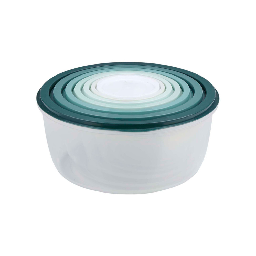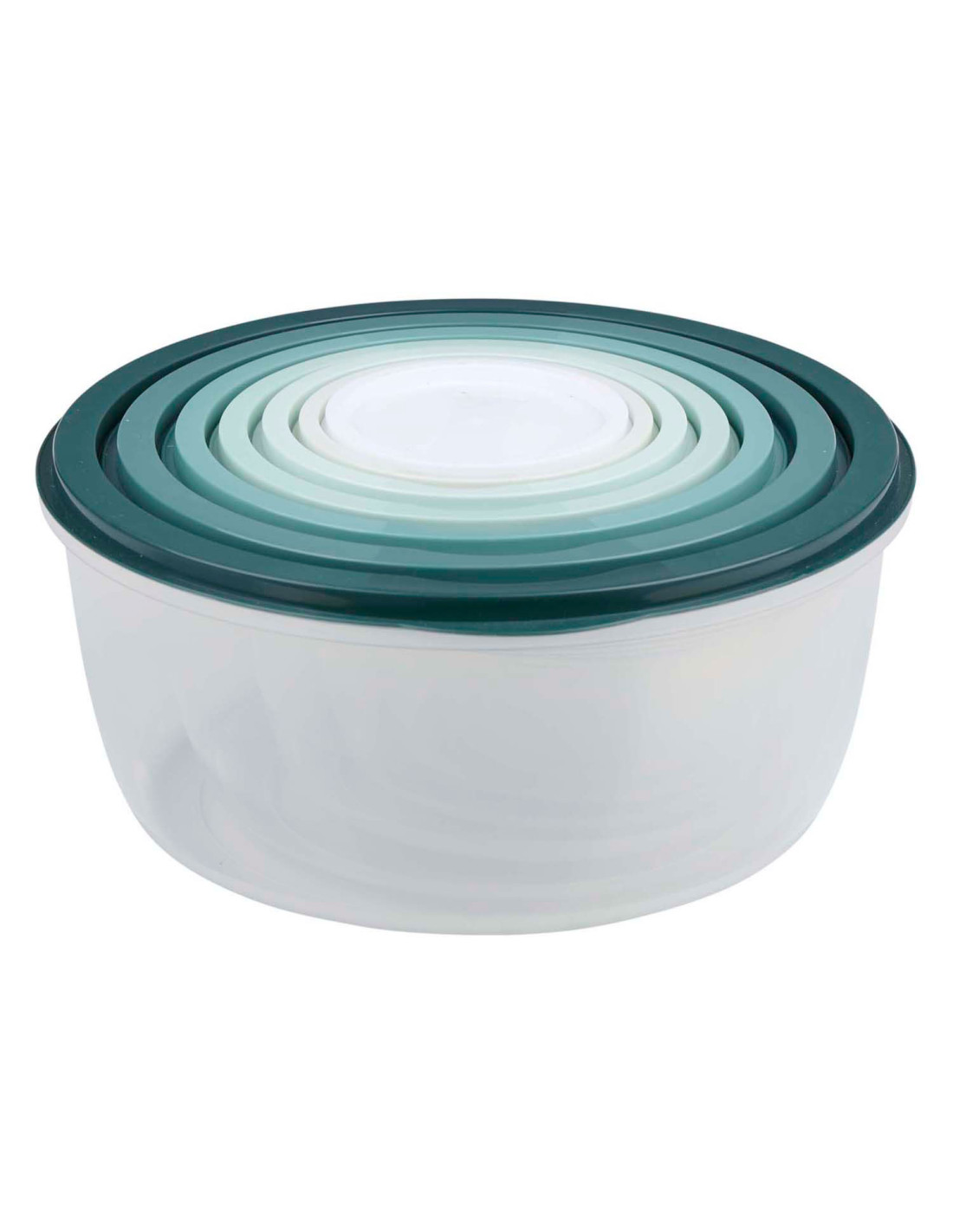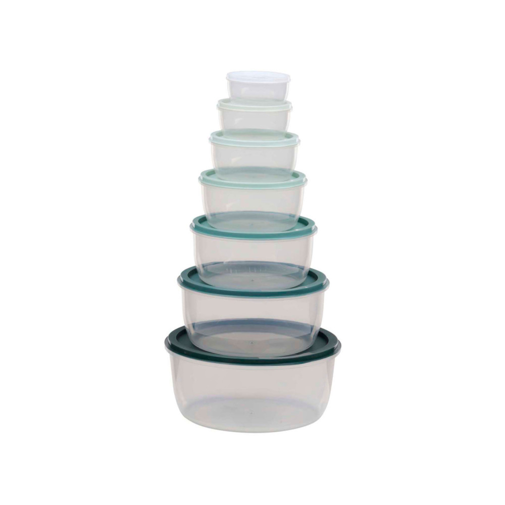 Een veelzijdige set van 14 opbergbakken in diverse kleuren, perfect voor het organiseren van voedsel en andere items. Stapelbaar voor efficiënt ruimtegebruik en beschikbaar in verschillende groottes.
