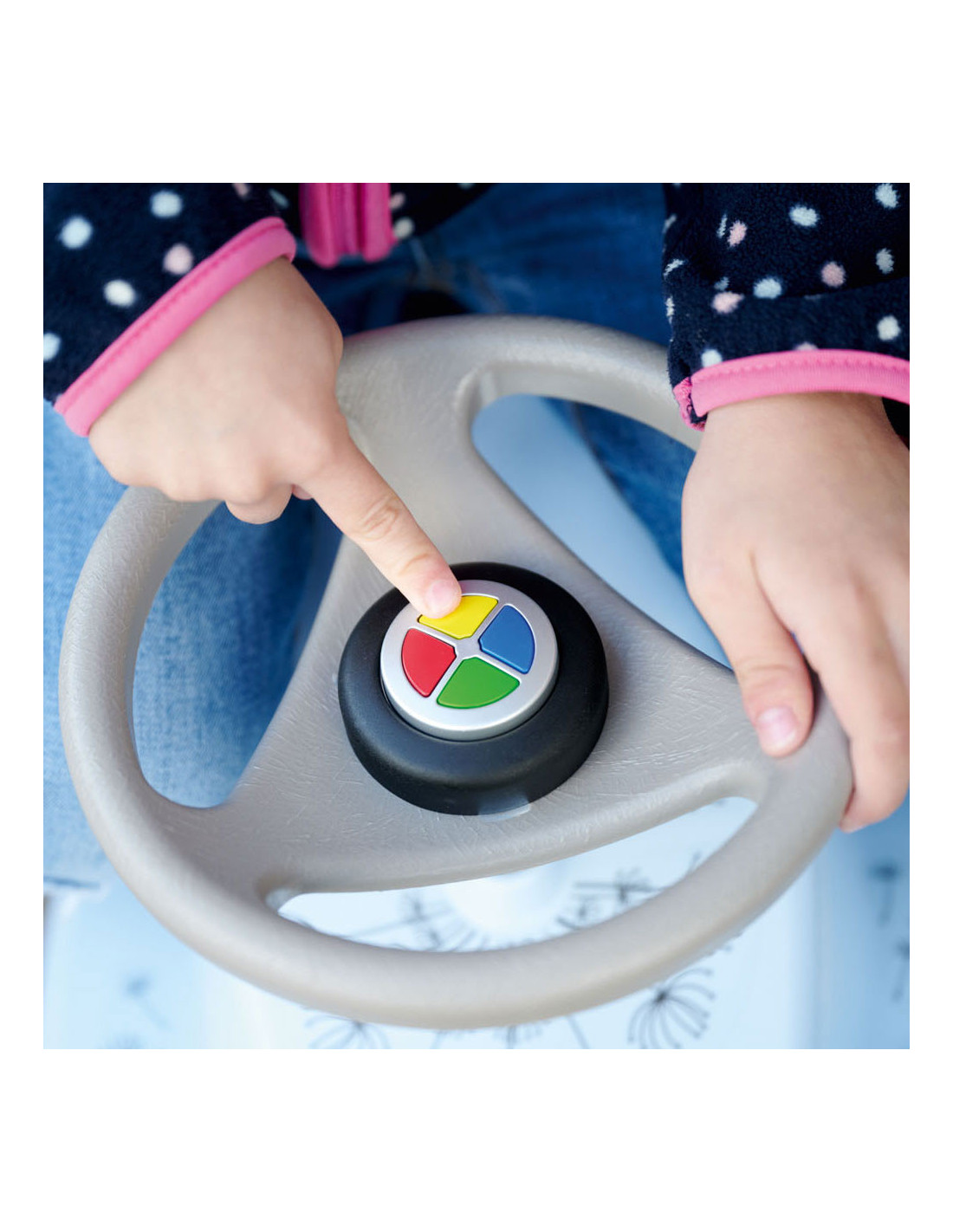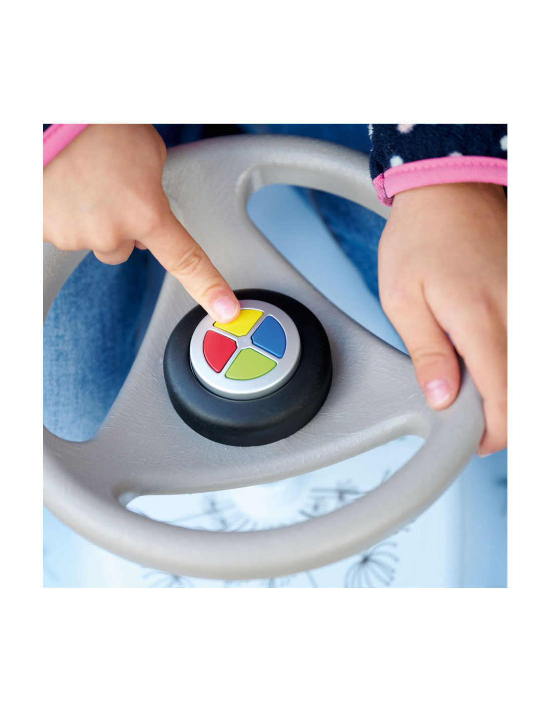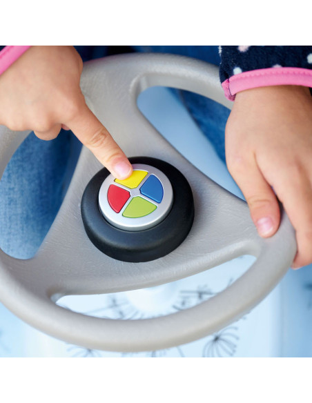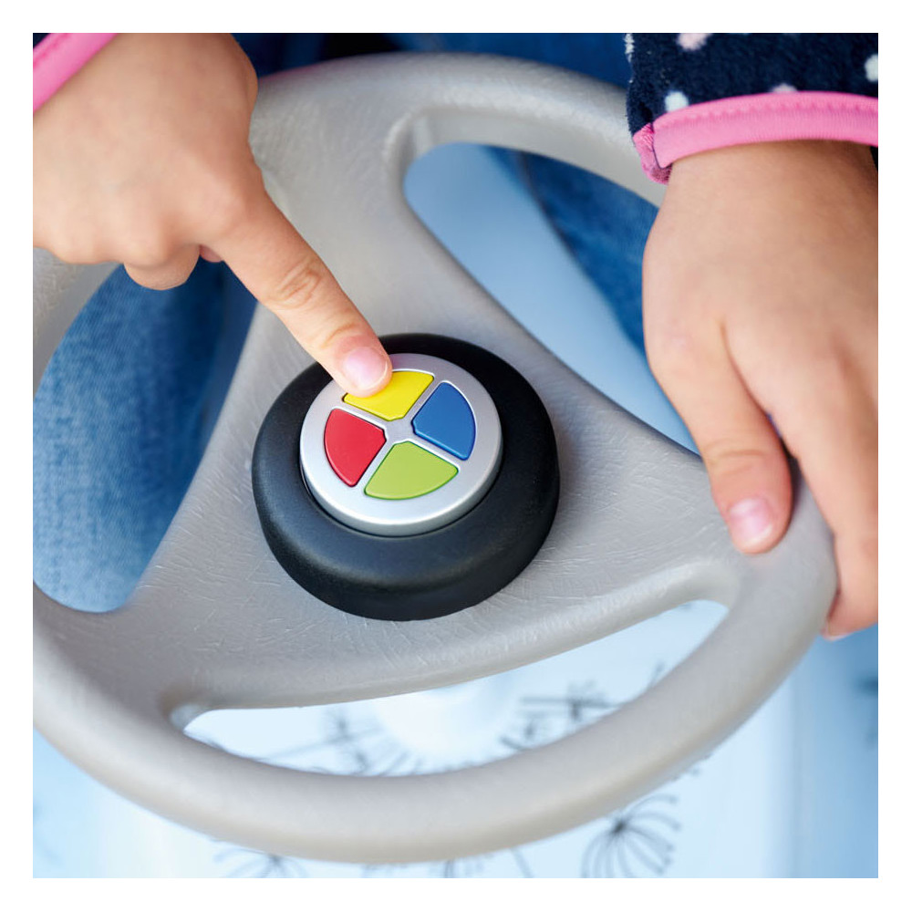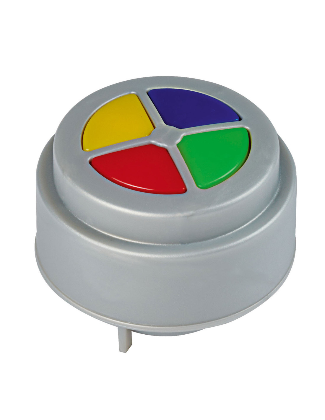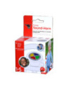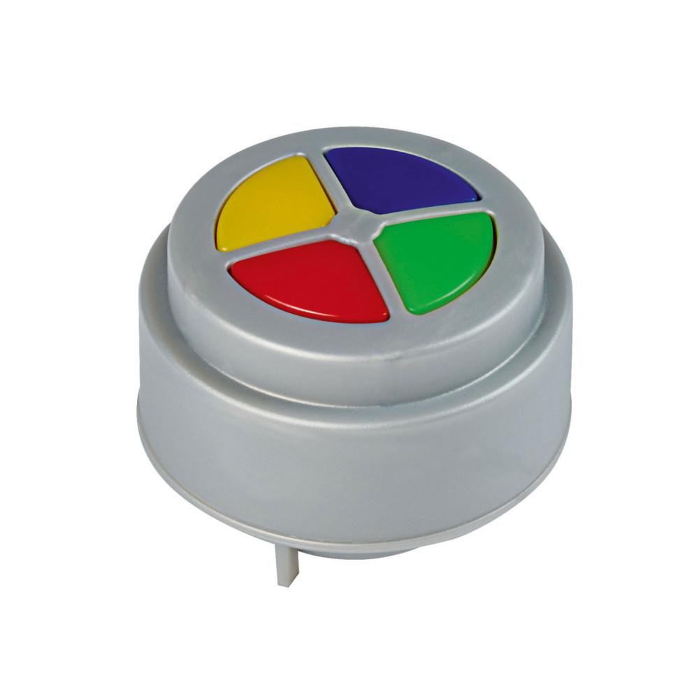 Elektronische toeter met grappige geluiden. Doorsnede 5 cm, hoogte 4 cm. Geschikt voor kinderen vanaf 12 maanden tot 5 jaar oud.