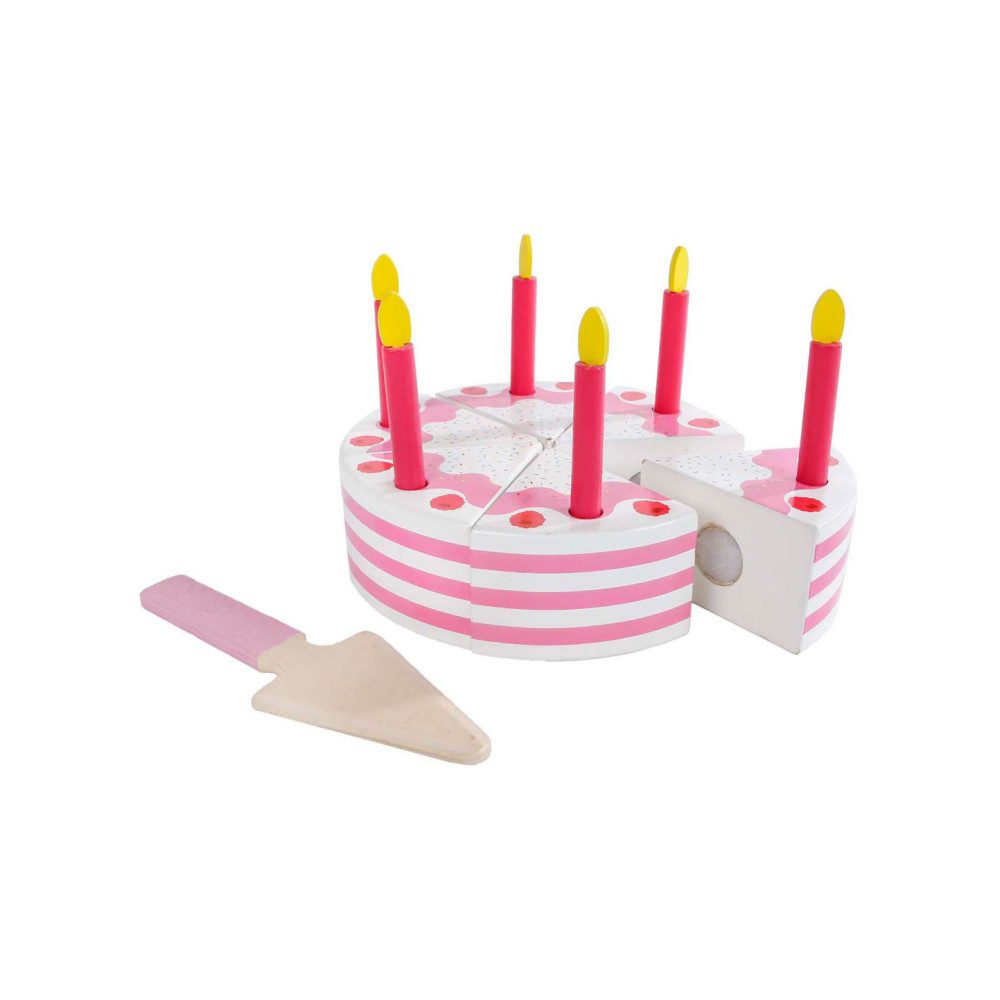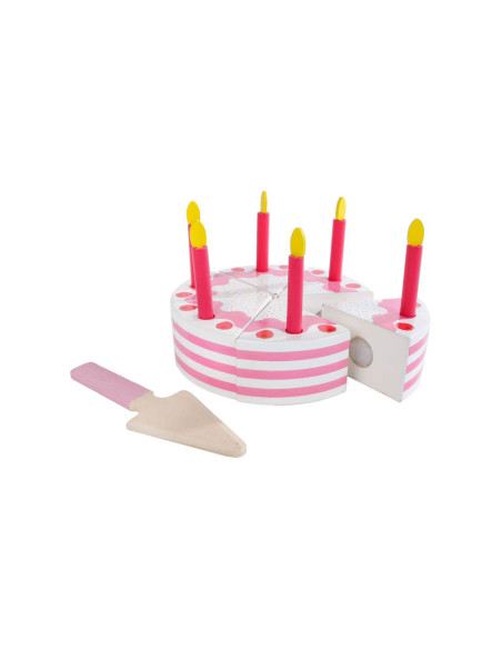 Big Tree verjaardagstaart van hout. De taart bestaat uit 6 taartpunten, 6 kaarsjes en 1 taartschep, en is ca. 15 cm groot. Geschikt voor kinderen vanaf 3 jaar.