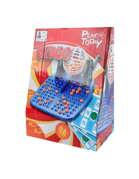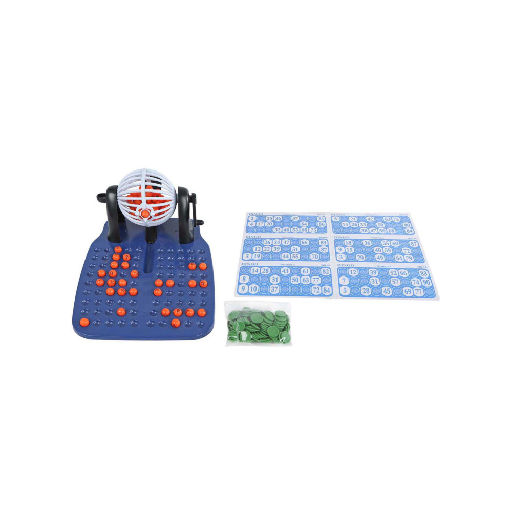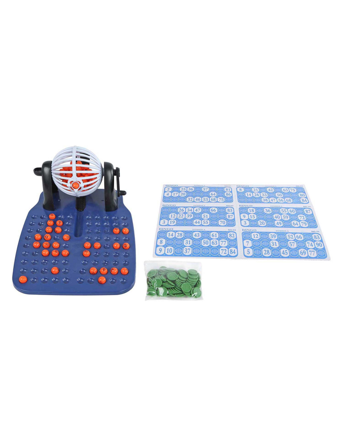 Complete bingomolen met 90 genummerde balletjes, 120 fiches en 48 speelkaarten. Gemaakt van kunststof en karton. Geschikt voor kinderen vanaf 4 jaar en te spelen met 2 of meer personen.