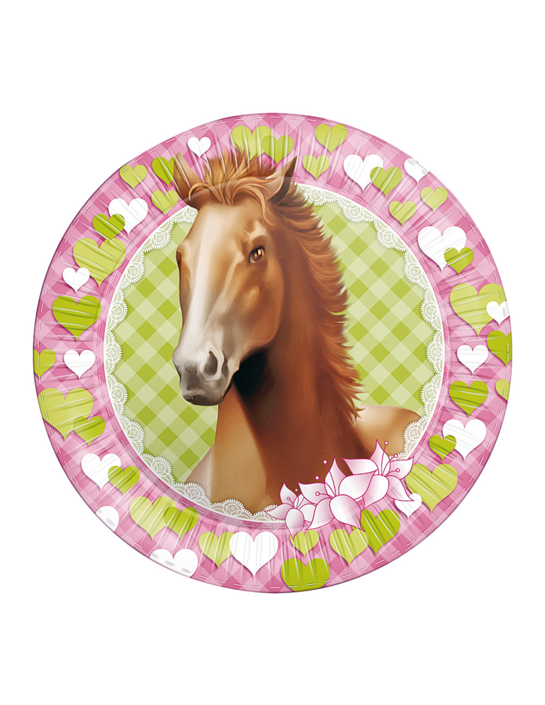 Set van 8 feestbordjes met voorop een afbeelding van een paard.