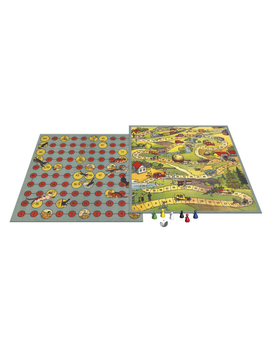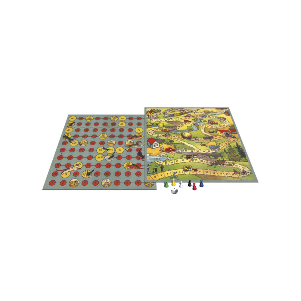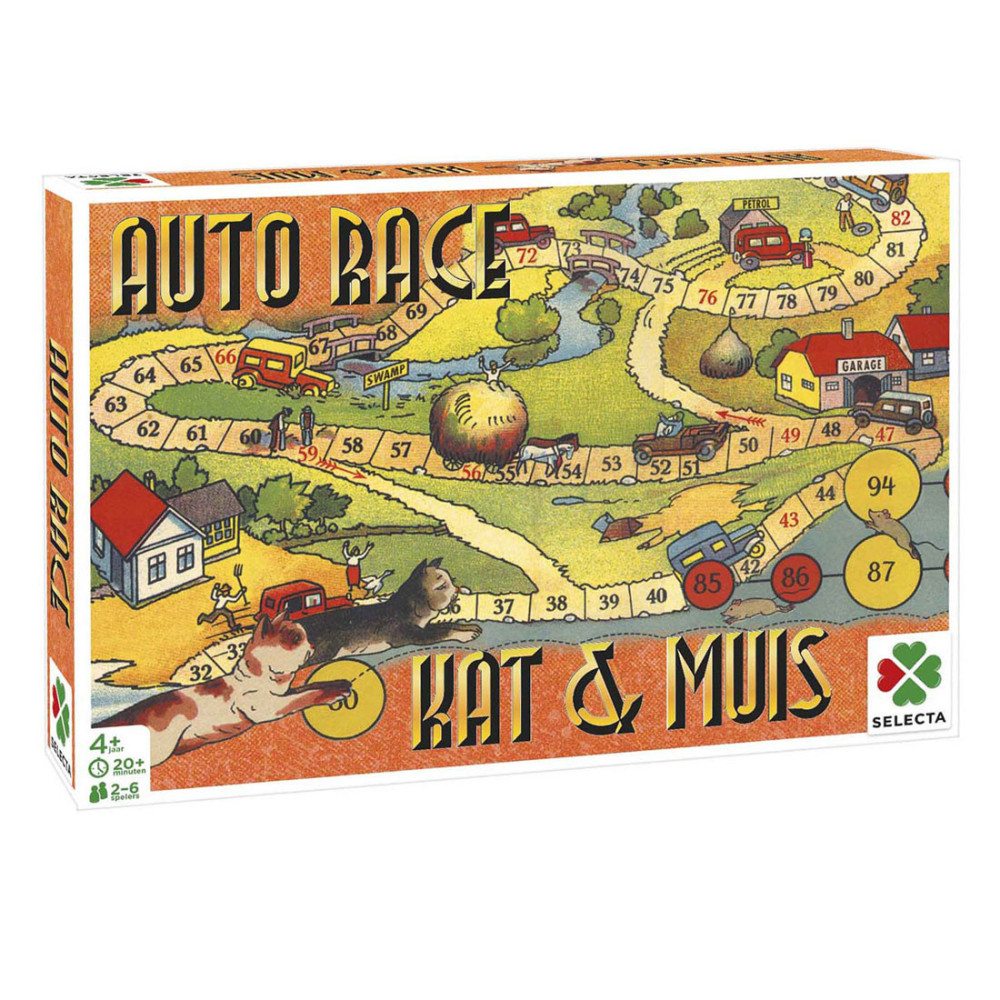 Ga terug in de tijd om te zien wat voor bordspellen je ouders en oma en opa speelden, toen zij klein waren! Ze hadden geen tv of computer om zich mee te vermaken op een regenachtige dag. Dus legden ze een bordspel op tafel en vermaakten zich kostelijk met familie, vriendjes en vriendinnetjes.In deze doos zitten twee verschillende spellen, Kat & Muis en Auto Race.Probeer de finish te bereiken, voordat de andere spelers daar zijn. Maar blijf opletten! Er zijn scherpe bochten en valkuilen onderweg!Inhoud: - Tweezijdig speelbord- Dobbelstenen- 6 pionnen- Spelregels
