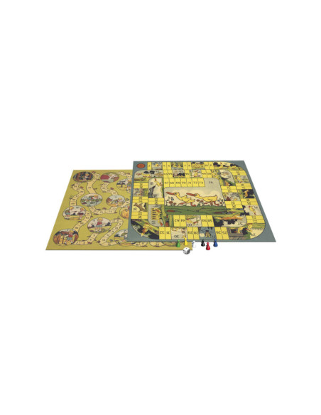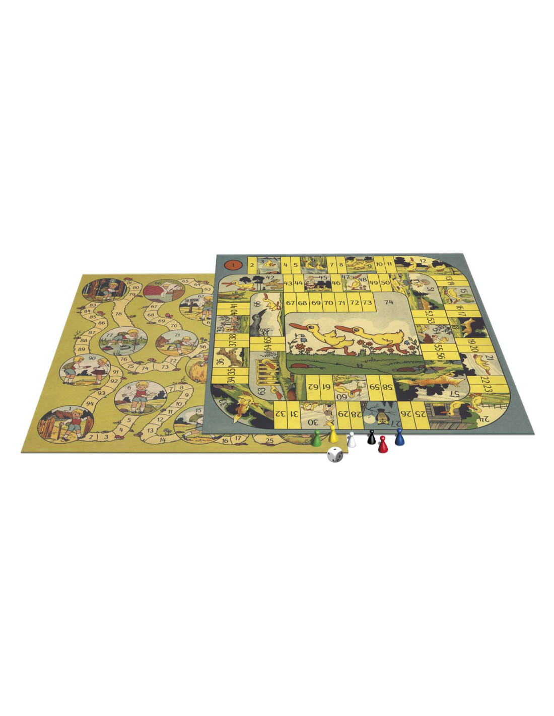 Ga terug in de tijd om te zien wat voor bordspellen je ouders en oma en opa speelden, toen zij klein waren! Ze hadden geen tv of computer om zich mee te vermaken op een regenachtige dag. Dus legden ze een bordspel op tafel en vermaakten zich kostelijk met familie, vriendjes en vriendinnetjes.In deze doos zitten twee verschillende spellen, Ganzenbord en Matt de Reiziger. Probeer de finish te bereiken, voordat de andere spelers daar zijn.Maar blijf opletten! Er zijn hindernissen en valkuilen onderweg!Inhoud: - Tweezijdig speelbord, - Dobbelstenen, - 6 Pionnen- Spelregels