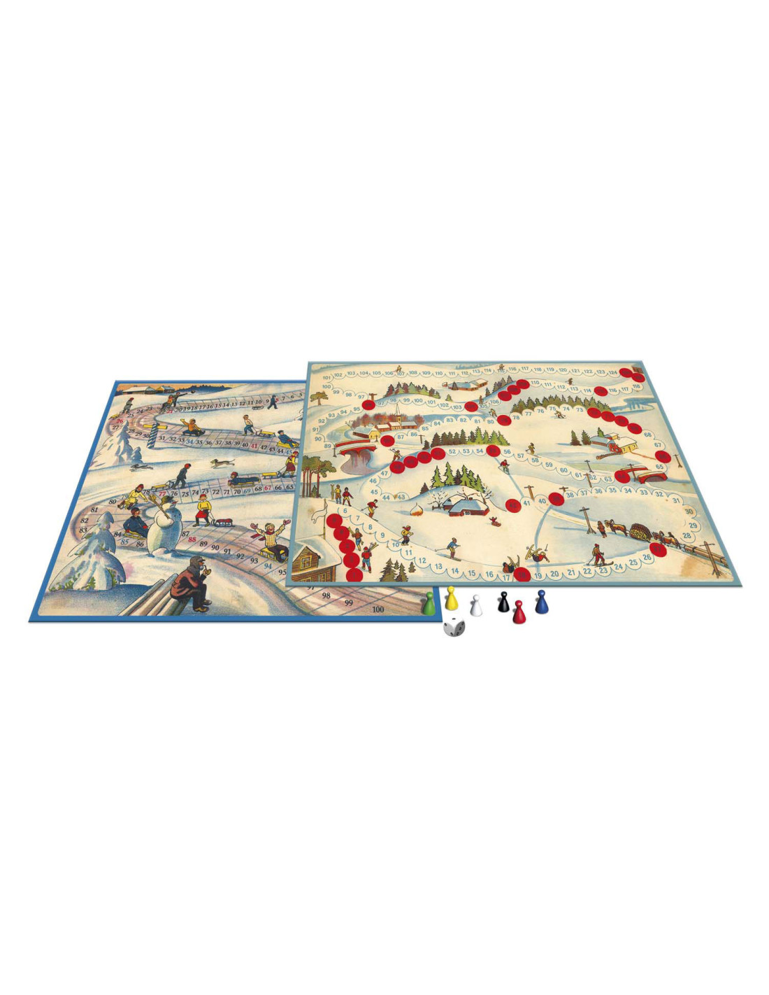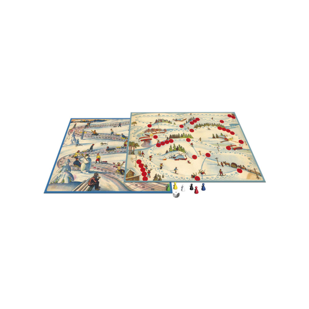 Ga terug in de tijd om te zien wat voor bordspellen je ouders en oma en opa speelden, toen zij klein waren! Ze hadden geen tv of computer om zich mee te vermaken op een regenachtige dag. Dus legden ze een bordspel op tafel en vermaakten zich kostelijk met familie, vriendjes en vriendinnetjes.Sleetje rijden! Wanneer deed je het voor het laatst? En Ski Club als voorbereiding op de wintersport. Twee winterse spellen in een doos. Gooi met de dobbelsteen en probeer de finish eerder te bereiken dan je medespelers. Maar blijf opletten, want onderweg zijn er vele hindernissen!Inhoud: - Tweezijdig speelbord- Dobbelstenen- 6 Pionnen- Spelregels.