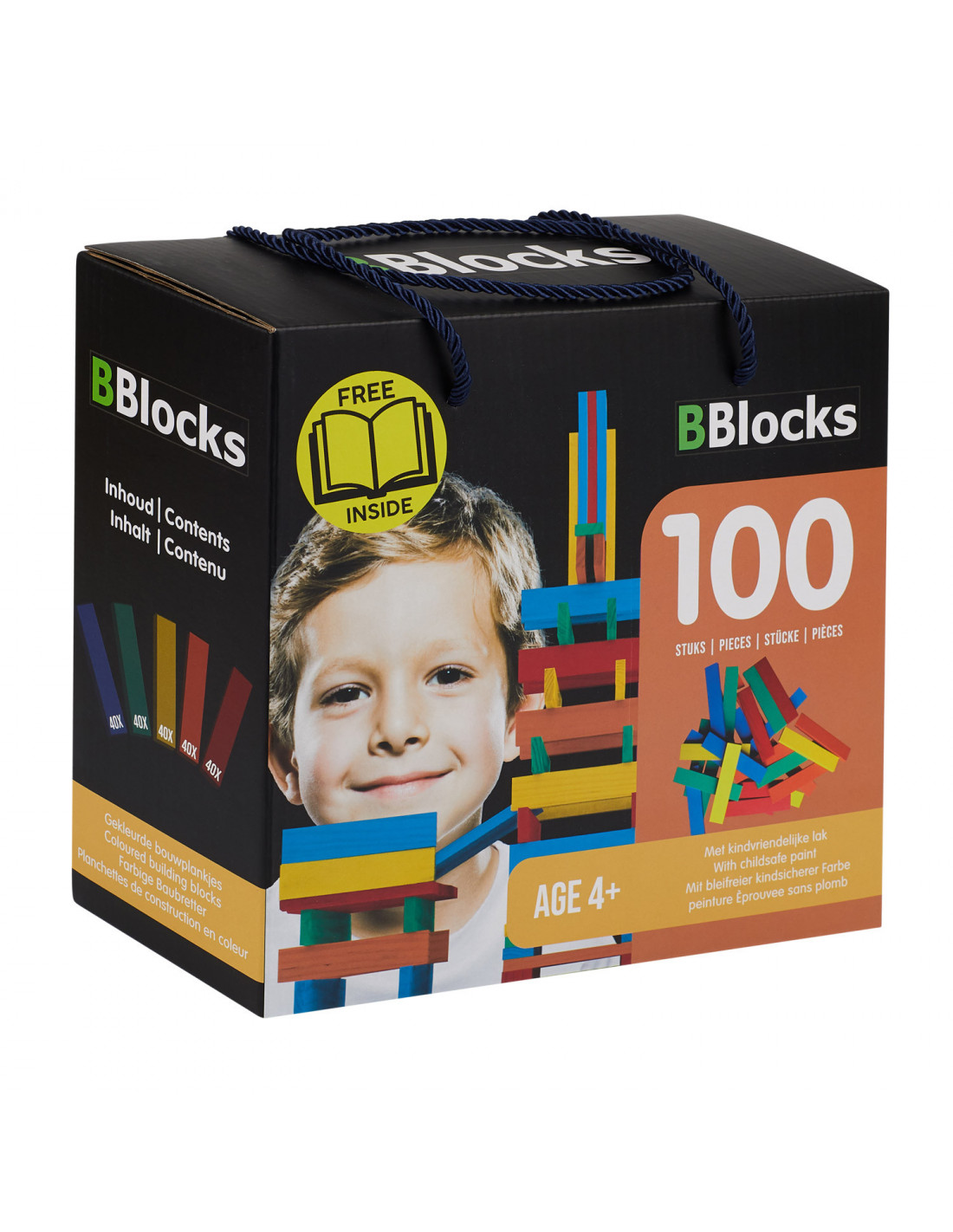 Stimuleer je creativiteit met de houten bouwplankjes van BBlocks. Maak grote bouwwerken met de 100 plankjes uit dit pakket. Door de verschillende kleuren plankjes wordt het bouwen nu nog diverser.