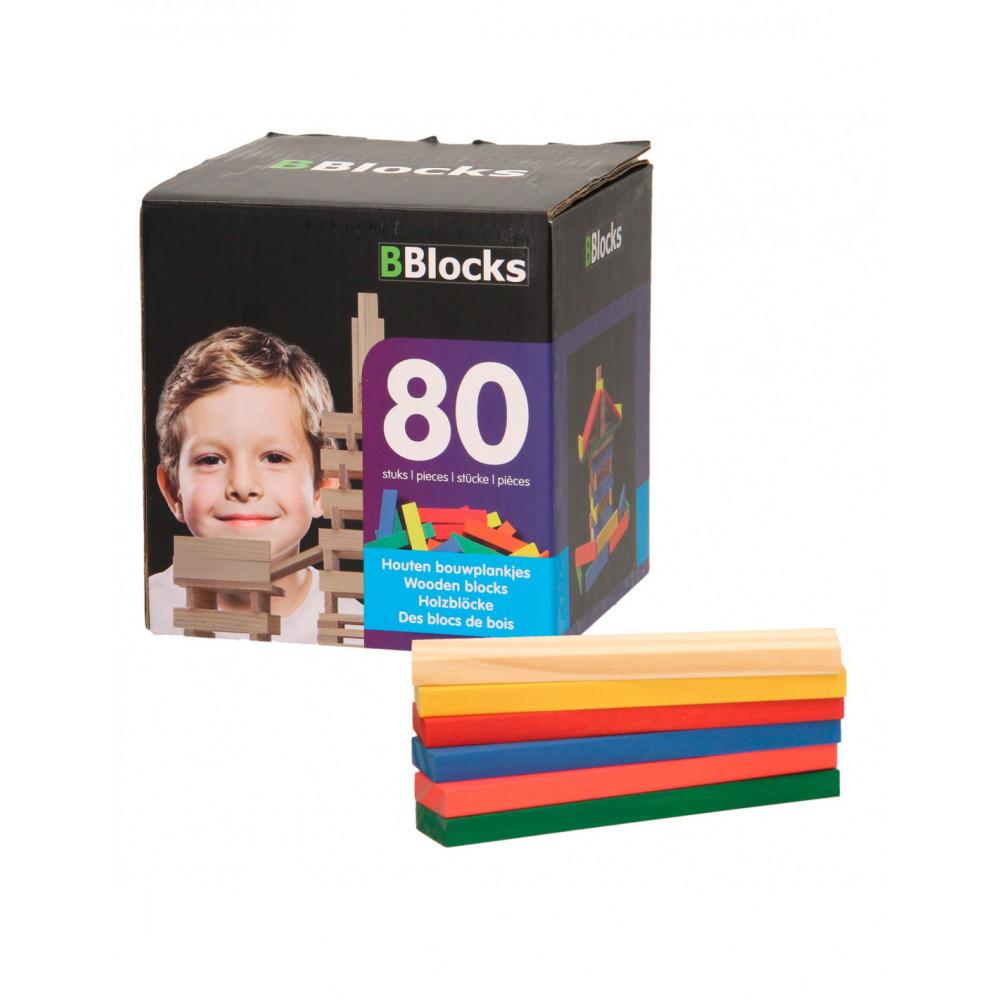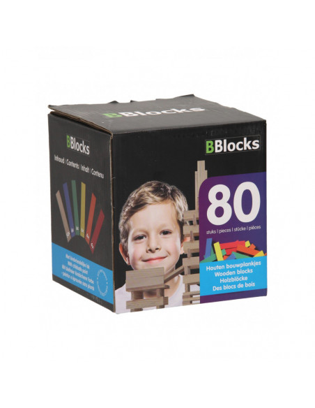 Stimuleer je creativiteit met de houten bouwplankjes van BBlocks. Maak grote bouwwerken met de 80 plankjes uit dit pakket. Door de verschillende kleuren plankjes wordt het bouwen nu nog diverser.