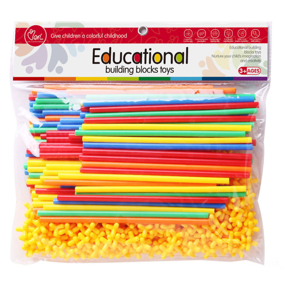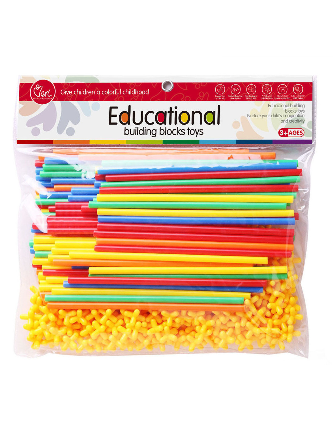 200-delige set bouwrietjes (19,5 cm) en koppelstukken. Geschikt vanaf 3 jaar.