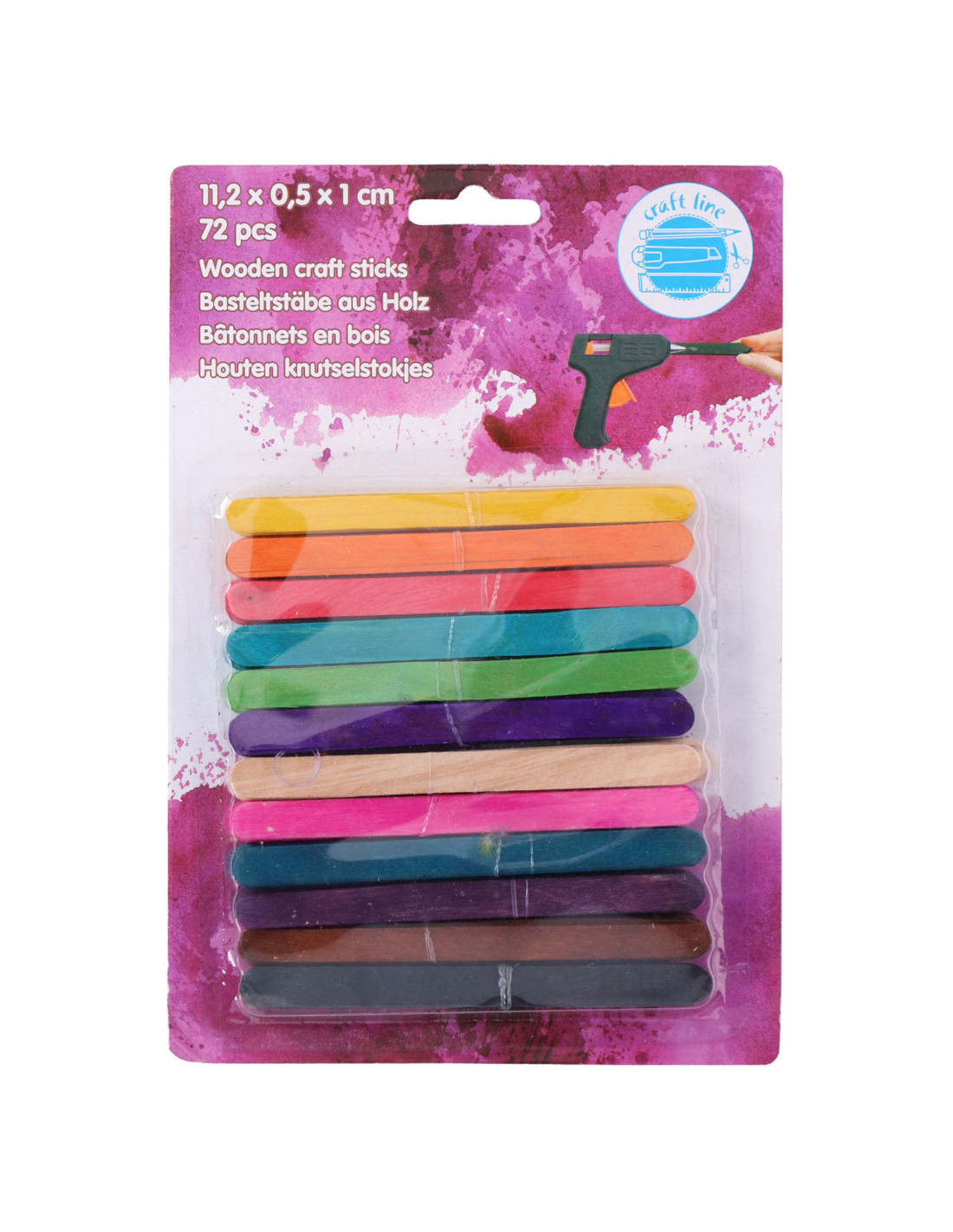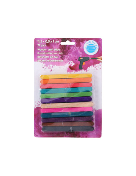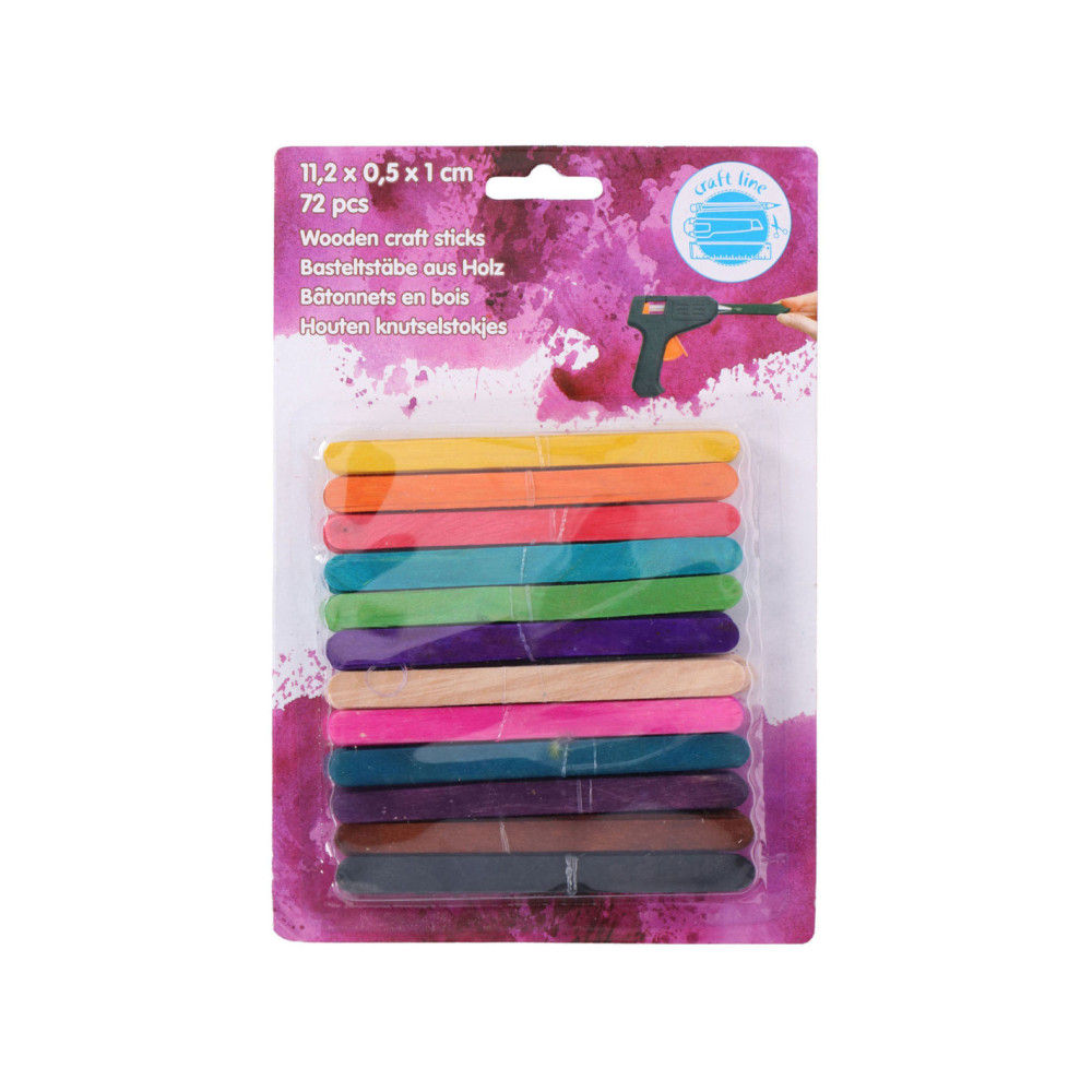 Maak de mooiste creaties met deze set van 72 houten knutselstokjes in verschillende kleuren.