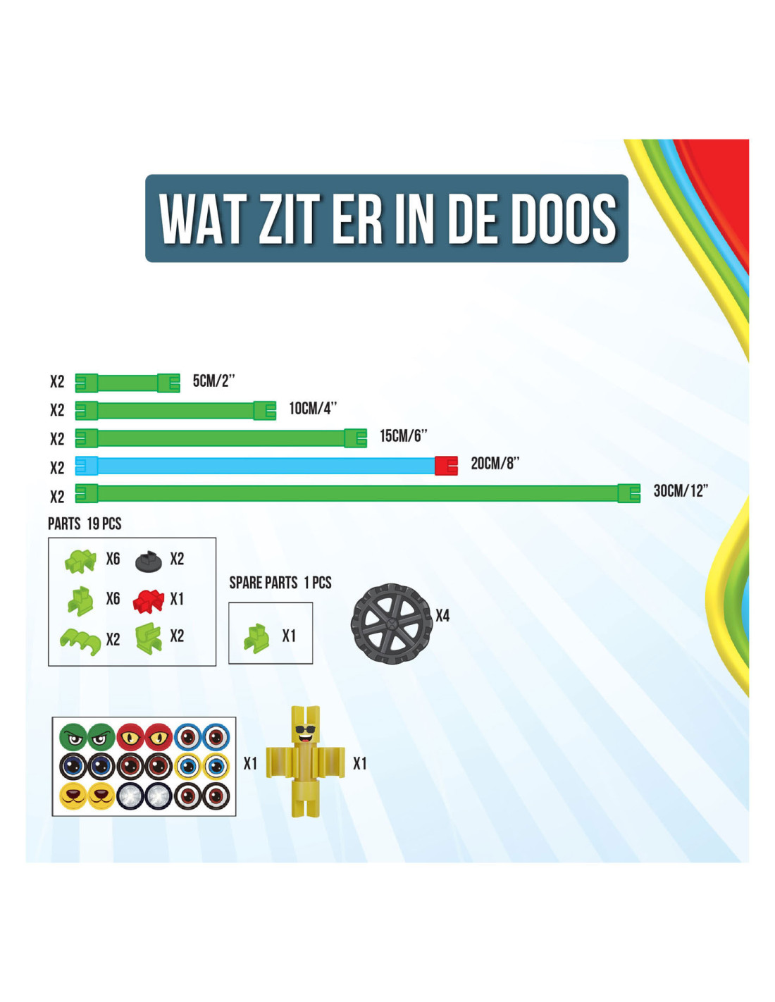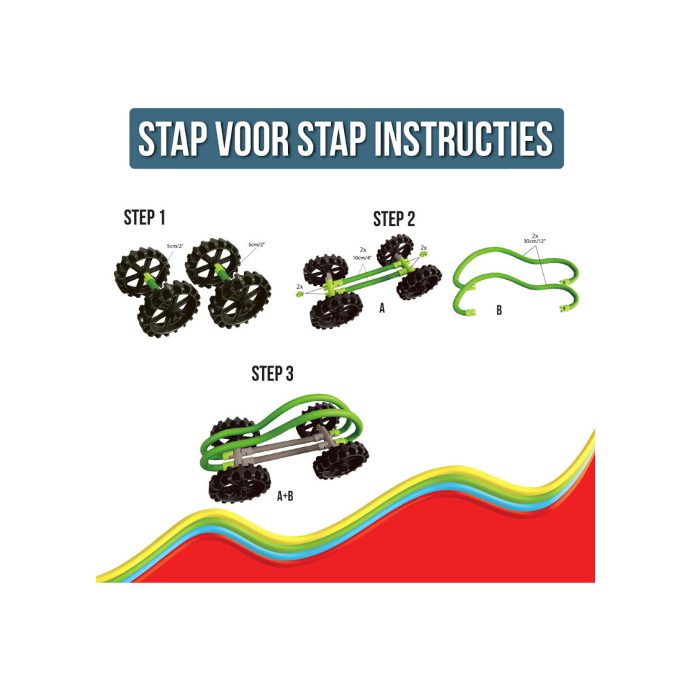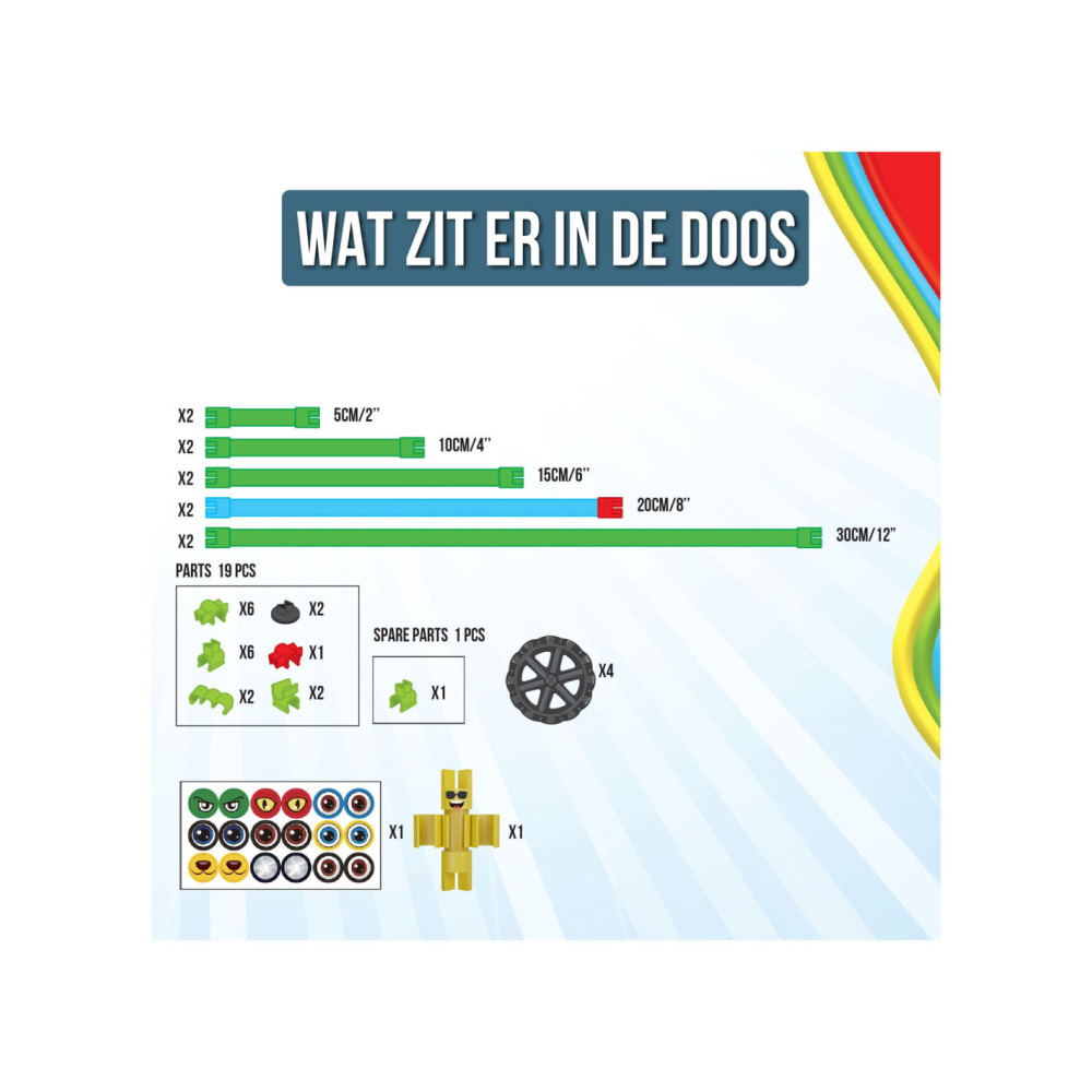 Spaghetteez Bendy Buggy Flexibele Bouwstaafjes. De set bestaat uit 34 onderdelen en stickers. Geschikt voor kinderen vanaf 5 jaar.