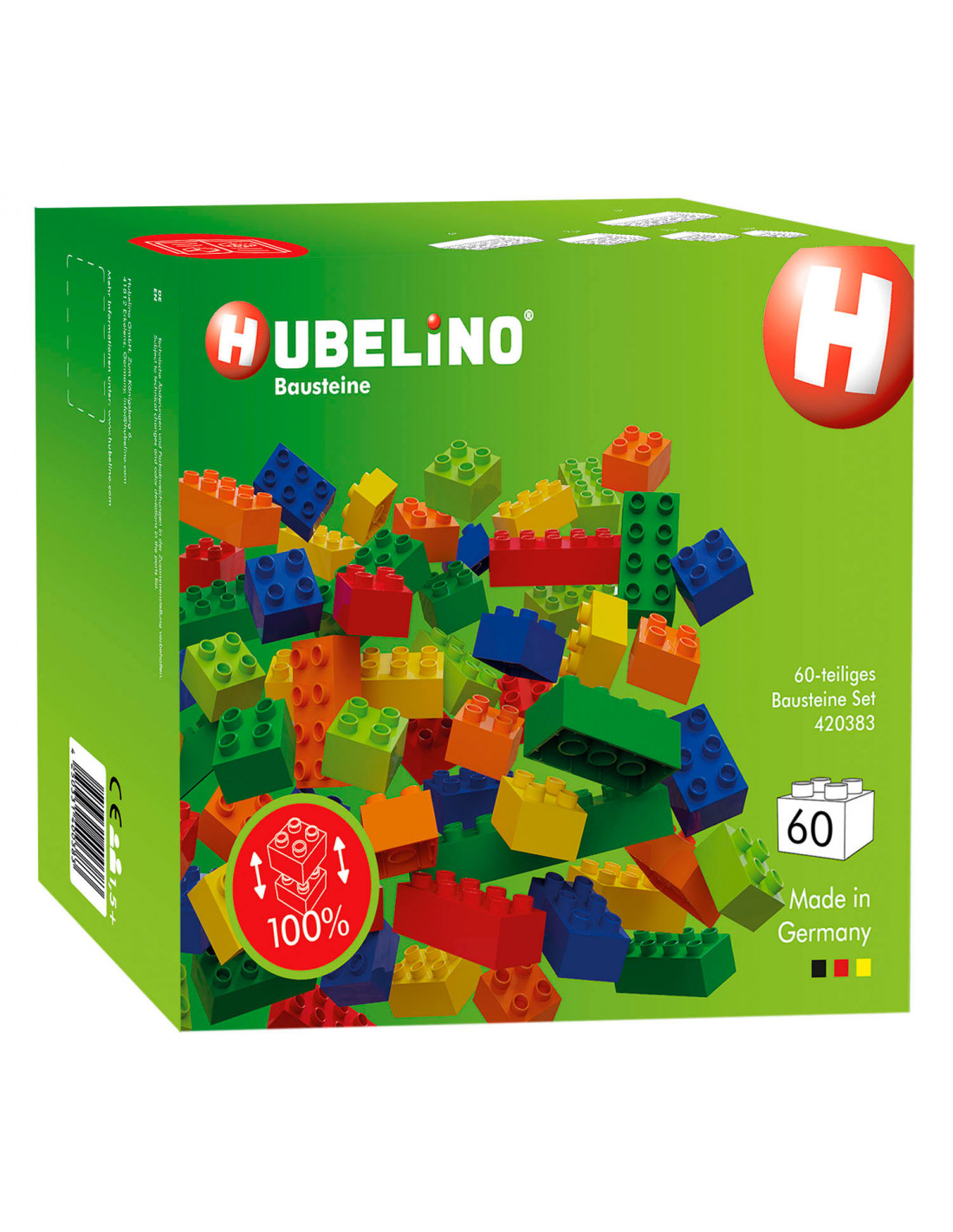 De bouwsteenset van Hubelino bevat 60 bouwstenen in verschillende maten en in de kleuren rood, blauw, groen, geel, oranje en lichtgroen. Eindeloos bouwplezier voor kinderen vanaf 1,5 jaar. De bouwstenen worden uitsluitend in Duitsland geproduceerd en zijn 100% compatibel met populaire bouwbloksystemen van andere fabrikanten.