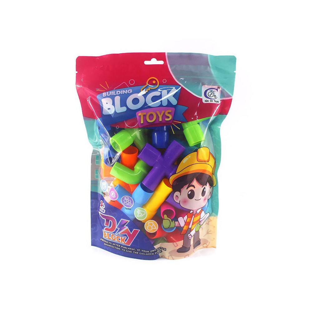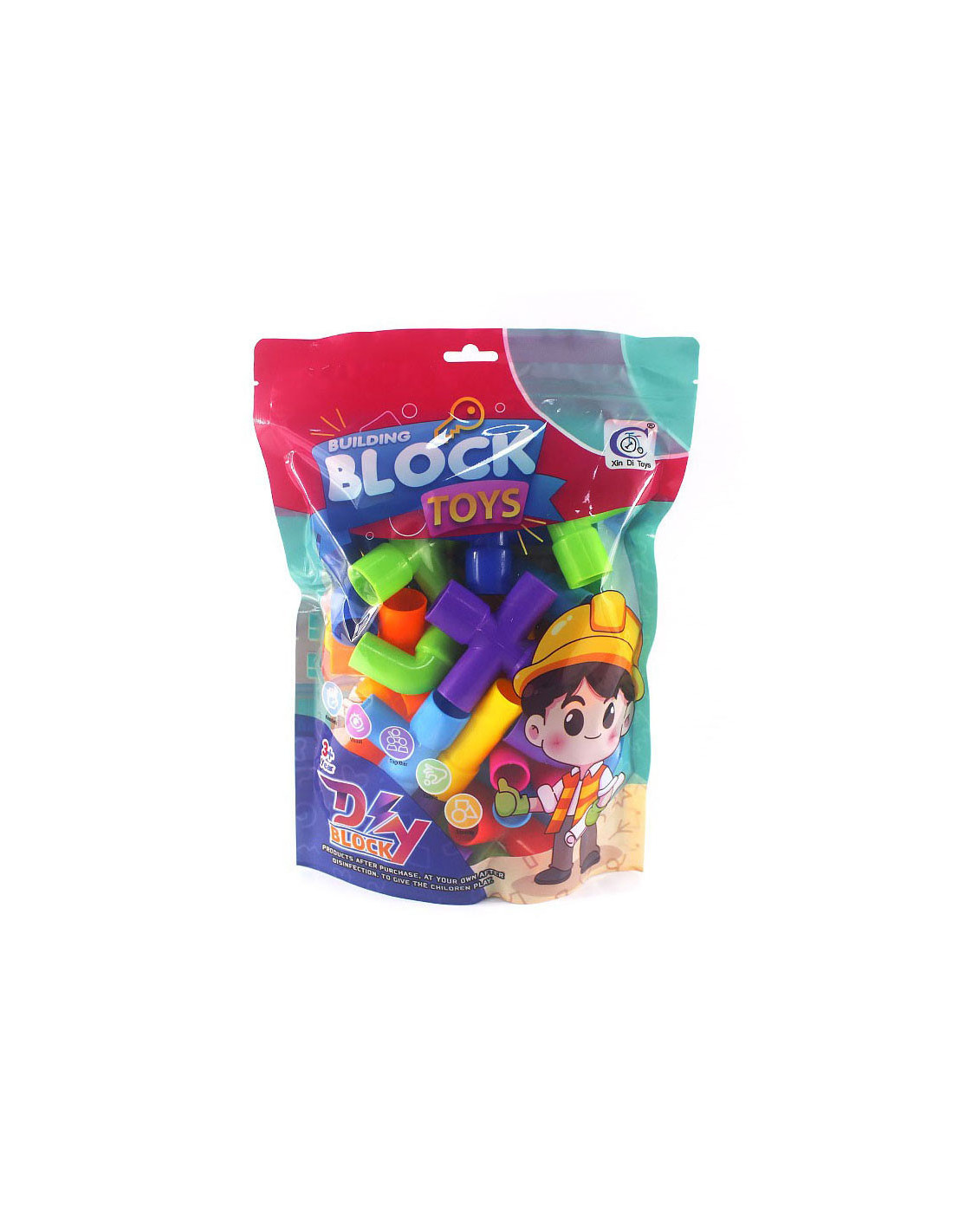 Zakje met kunststof bouwbuisjes die eenvoudig aan elkaar te klikken zijn. O.a. rechte buisjes, T-splitsingen, kruizen en bochten. Afmetingen zak: 21 x 28 centimeter. Geschikt voor kinderen van 3 jaar en ouder.