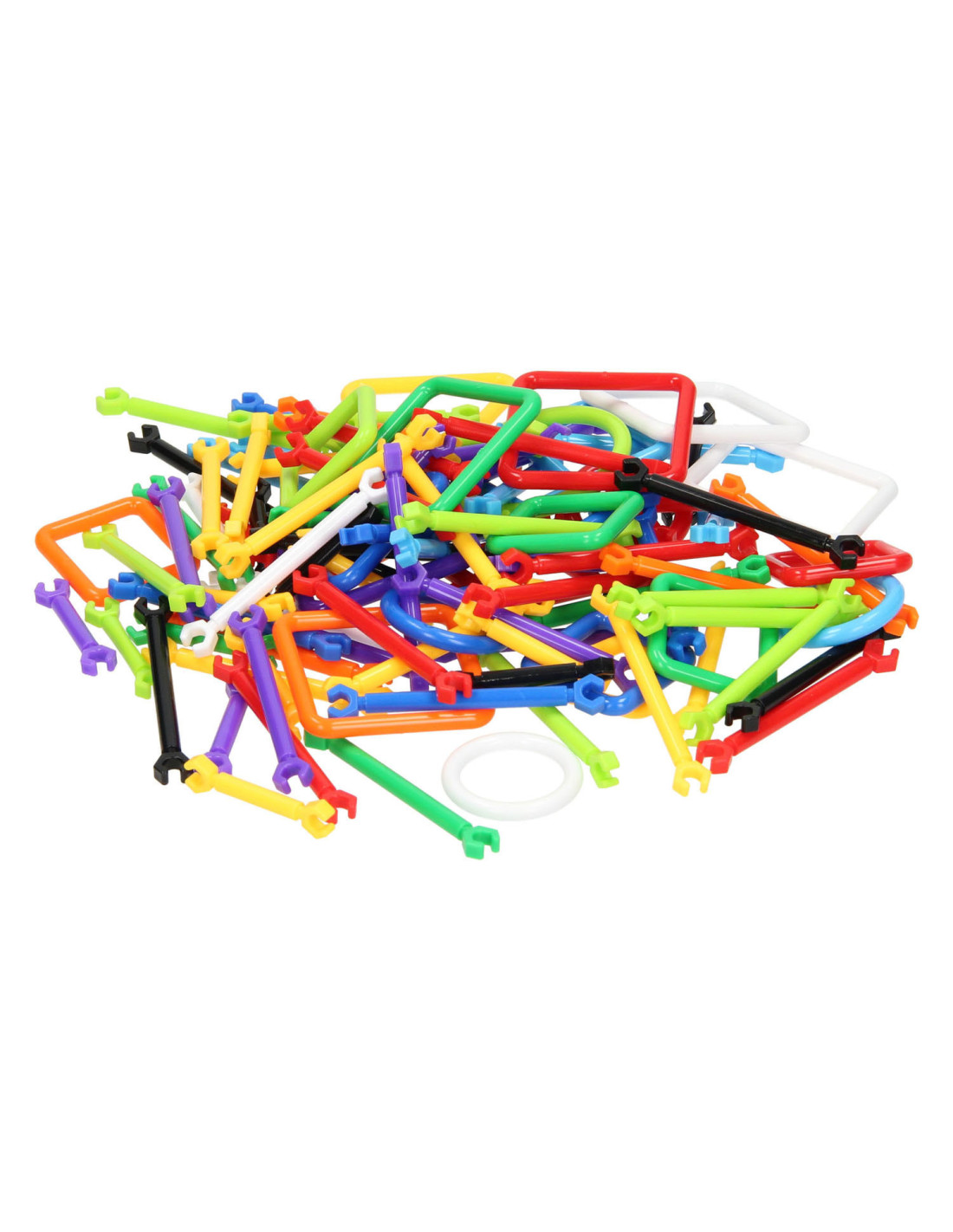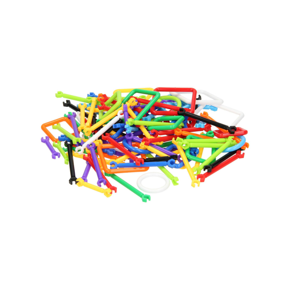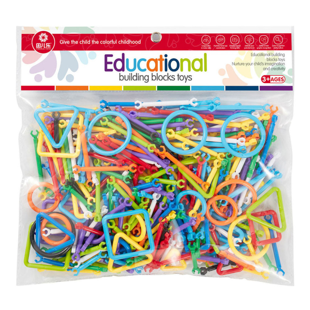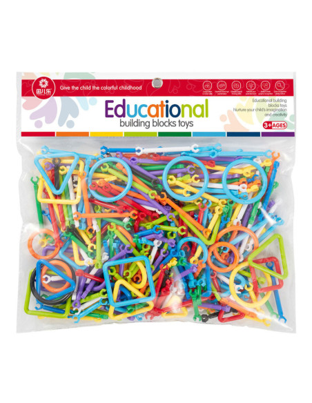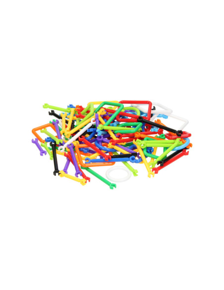 Set van 293 kunststof bouwelementen voor het samenstellen van creatieve bouwwerken. Inclusief handleiding met voorbeeld. Geschikt vanaf 3 jaar.