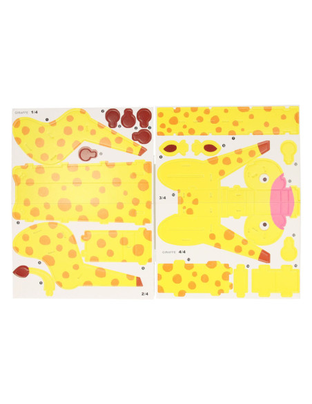 Bouwpakketje voor het maken van een 3D giraffe. Gemaakt van papier & EPS schuim en geschikt voor kinderen vanaf 3 jaar oud.