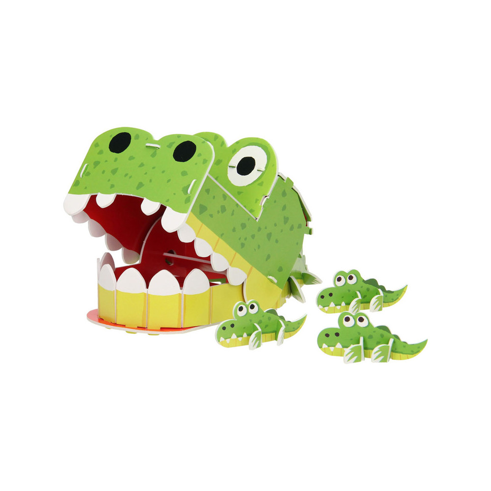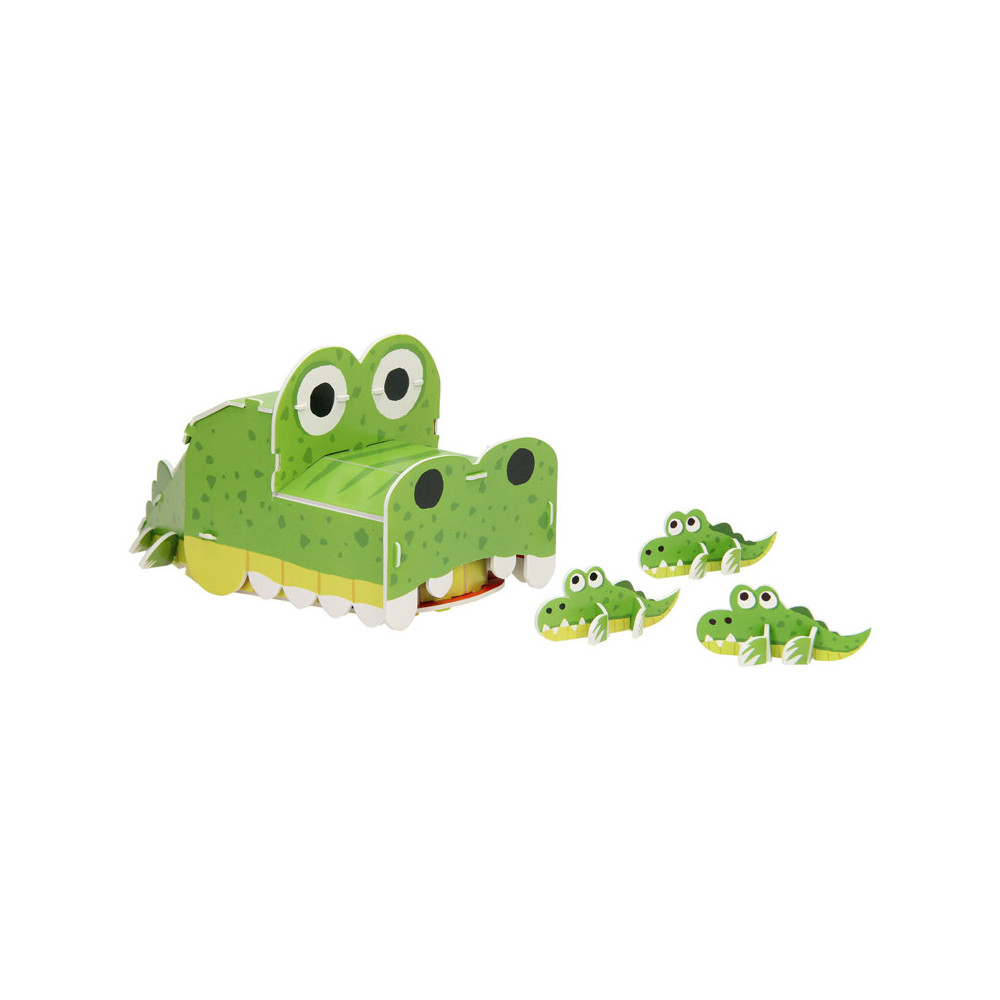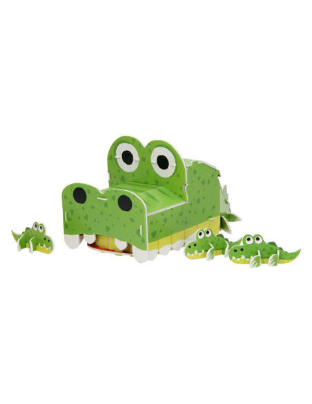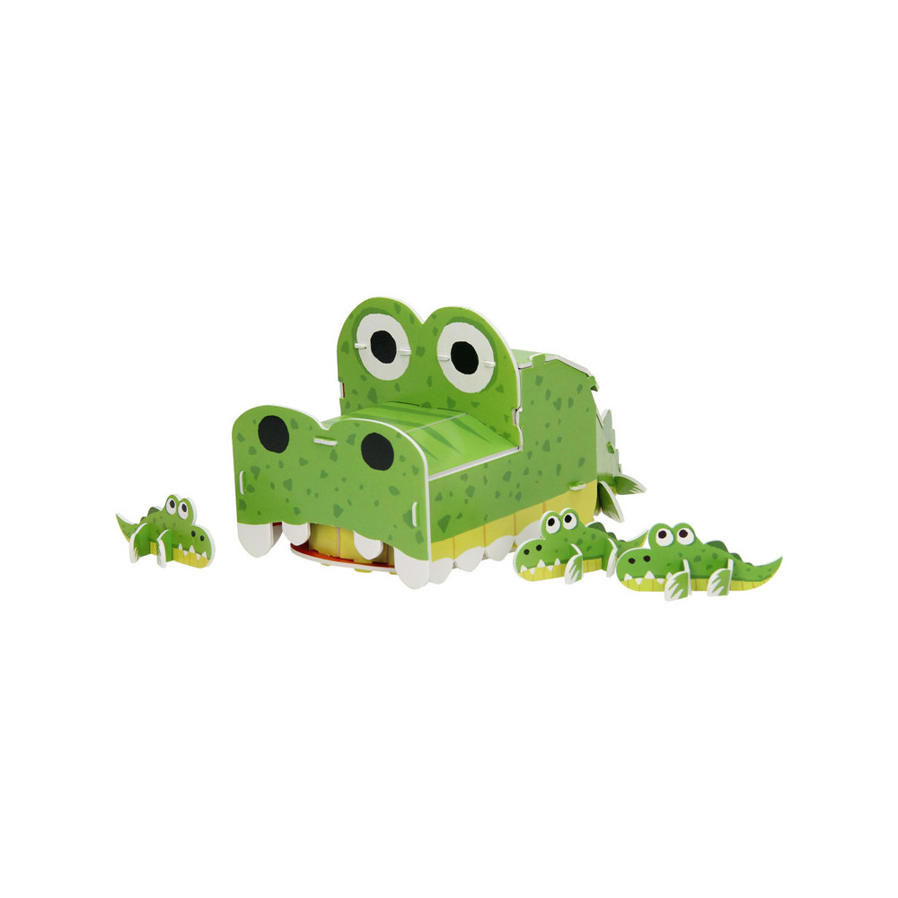 Bouwpakketje voor het maken van een 3D krokodil (21-delig). Gemaakt van papier & EPS schuim en geschikt voor kinderen vanaf 3 jaar oud.