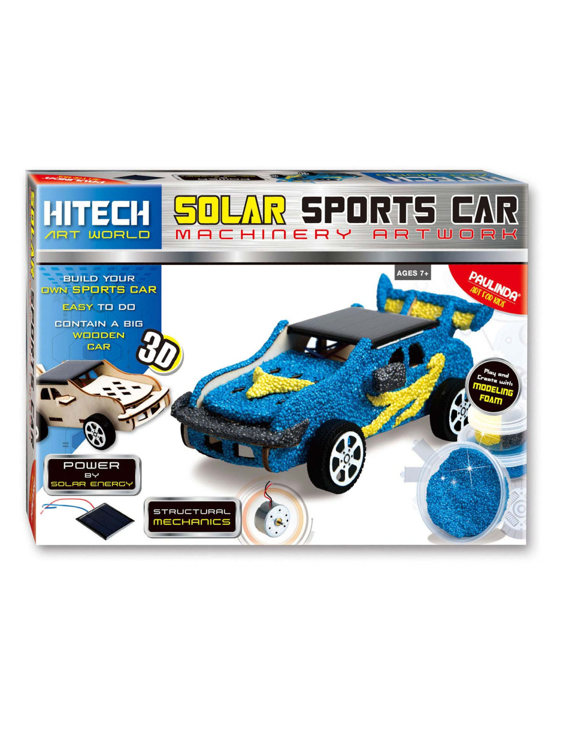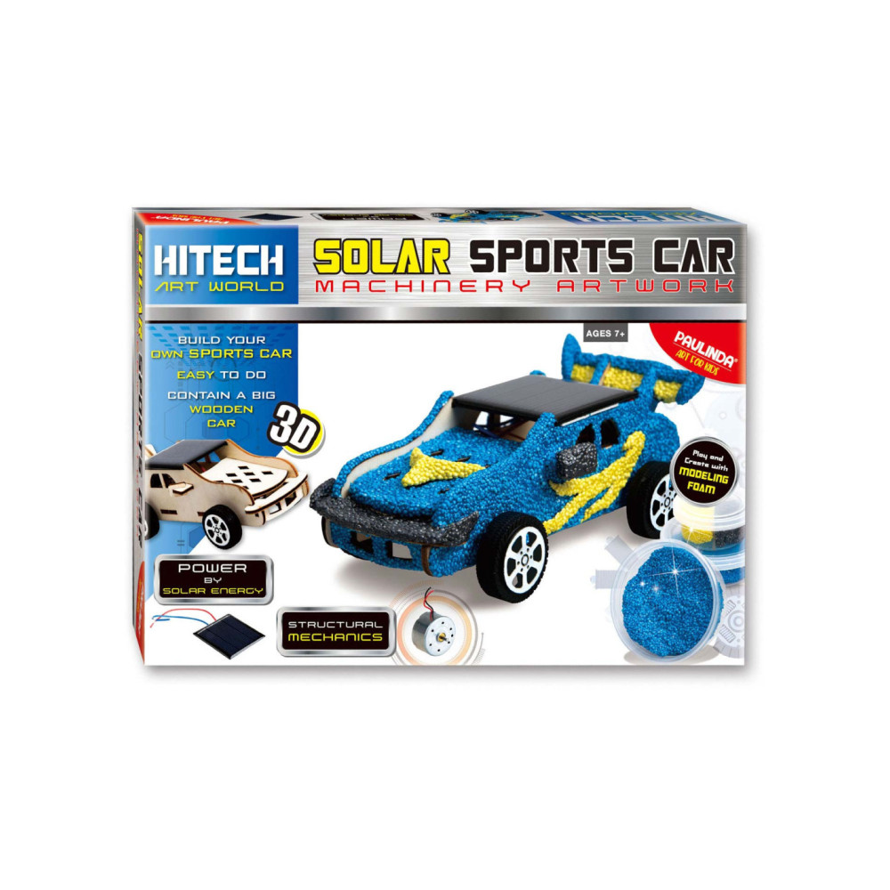 Sportwagen bouwpakket van Paulinda voor het maken van een 3D sportwagen die aangetuurd wordt door zonnepanelen. Met foamklei voor het decoreren. Geschikt voor kinderen vanaf 7 jaar.