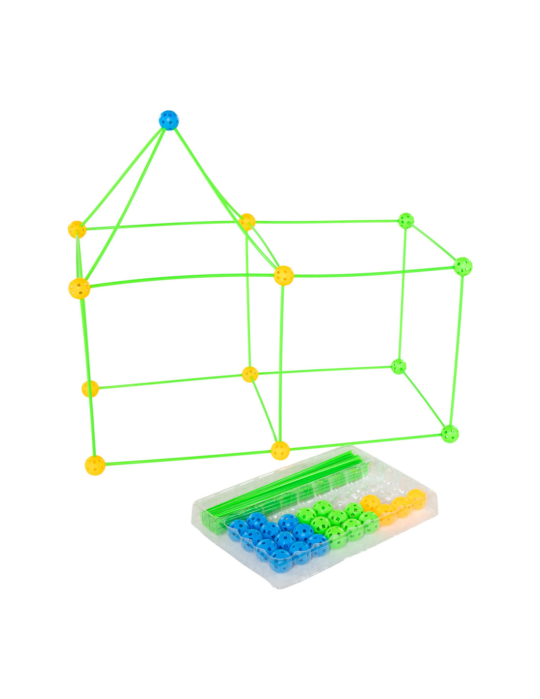 Bouwset met ballen en staven die in elkaar geklikt worden. Geschikt voor kinderen vanaf 3 jaar.