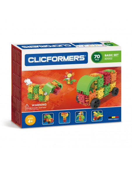 De Basic Set 70 PCS is de uitgebreide versie van de 50 PCS. In deze verpakking vind je eveneens 22 meegeleverde accessoires, een stickervel om je creaties nog meer glans te geven en een boekje met handleidingen voor als je inspiratie het even laat afweten. Deze Clicformers set is een prima verpakking voor de startende Clicformers bouwers die graag meteen grotere constructies bouwen of meerdere figuren tegelijkertijd willen creëren. Want dat heb je met creatieve denkers die houden van constructiespeelgoed: die willen hun creativiteit niet ingeperkt zien door een tekort aan bouwspeelgoed en Clicformers blokjes. Daarom is deze verpakking erg geschikt als ontdekkingsdoos voor Clicformers. Je start met een mooie basisset waarvan je weet dat je die straks met alle andere verpakkingen kan gaan combineren. Zo wordt je Clicformers universum steeds groter en je bouw vaardigheden steeds verfijnder. Want ja, het educatief speelgoed van Clicformers is buitengewoon fun speelgoed. De favoriet van ouders én kinderen. Want spelen met Clicformers is niet alleen erg leuk, het helpt ook de fijne motoriek ontwikkelen en stimuleert het creatieve denken. Wie had gedacht dat je van het bouwen van dat Clicformers hondje of die coole vrachtwagen ineens ook slimmer werd! Clicformers is als peuterspeelgoed geschikt voor kinderen vanaf 4 jaar. En omdat Clicformers zelf ook slim speelgoed is, blijft het boeien. Dat maakt dat dit kinderspeelgoed met je kind meegroeit. Er worden steeds ingewikkelder constructies mee gebouwd door de blokjes en accessoires telkens opnieuw op een andere manier ineen te klikken.