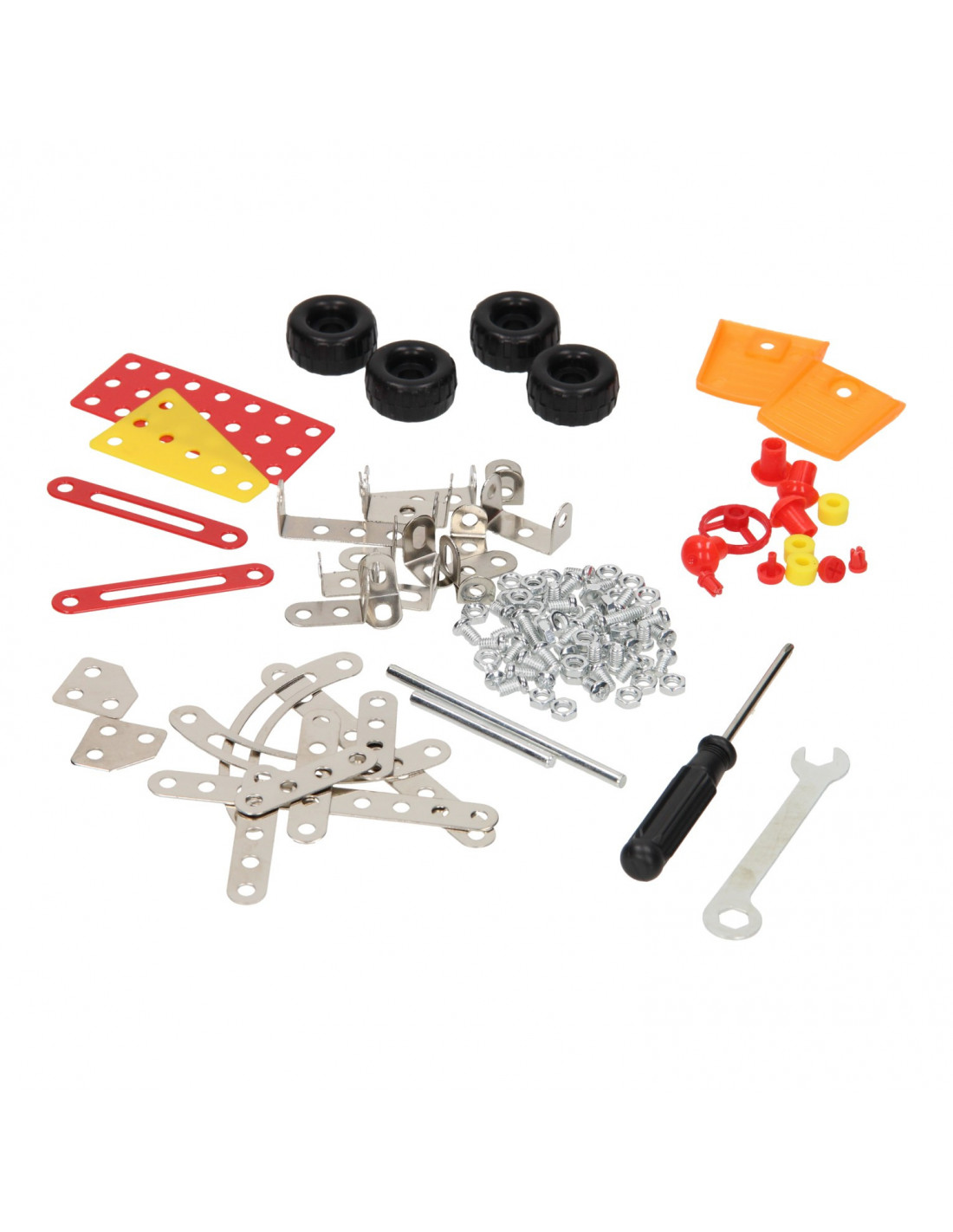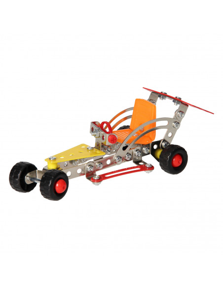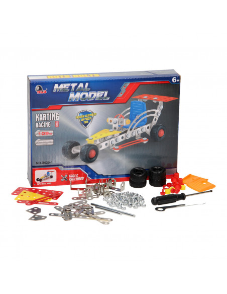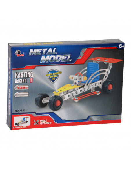 Met de Constructie Metaal Raceauto bouwset kunnen kinderen vanaf 6 jaar hun eigen raceauto creëren. Deze uitdagende constructieset bevat 109 onderdelen en wordt geleverd met al het benodigde gereedschap. Volg het gedetailleerde 9-stappenplan om stap voor stap je raceauto te assembleren.