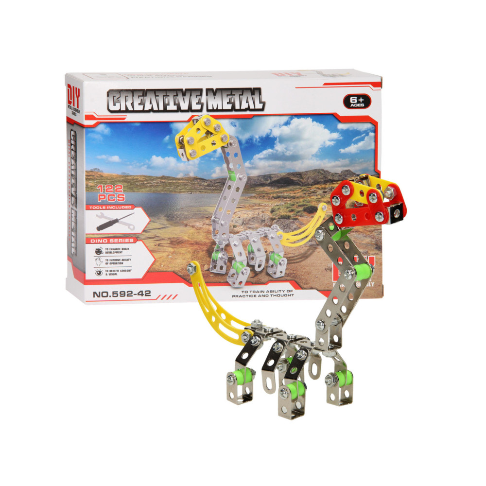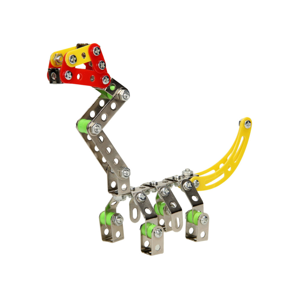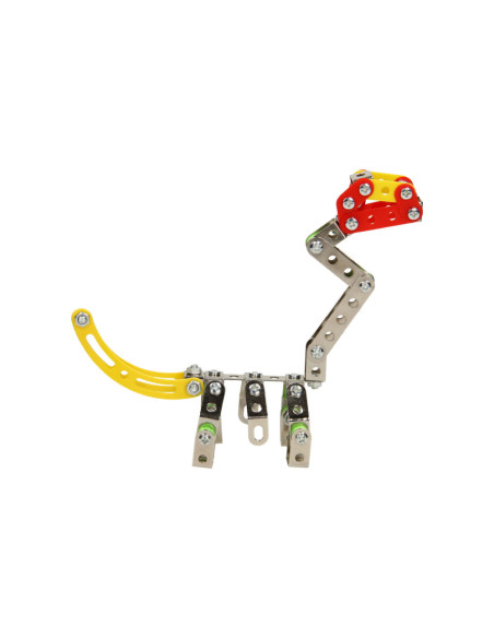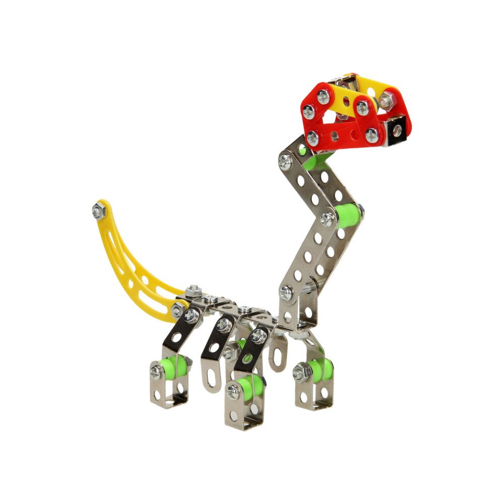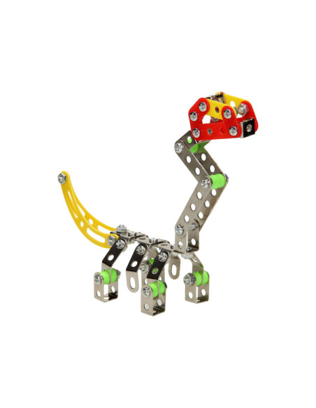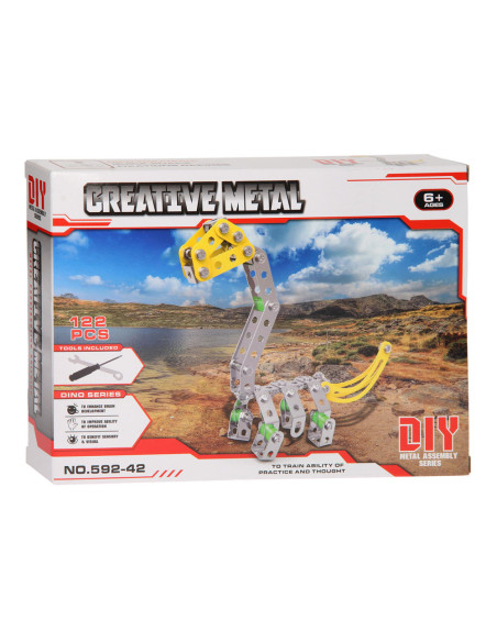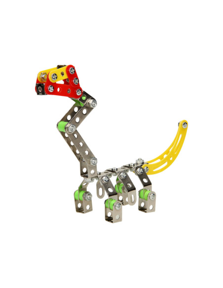 Ga de uitdaging aan en bouw je eigen dino met deze metalen constructieset bestaande uit 122 onderdelen. Monteer de onderdelen van metaal en stevig kunststof aan elkaar en speel daarna de spannende dino avonturen na. Inclusief montagegereedschap.