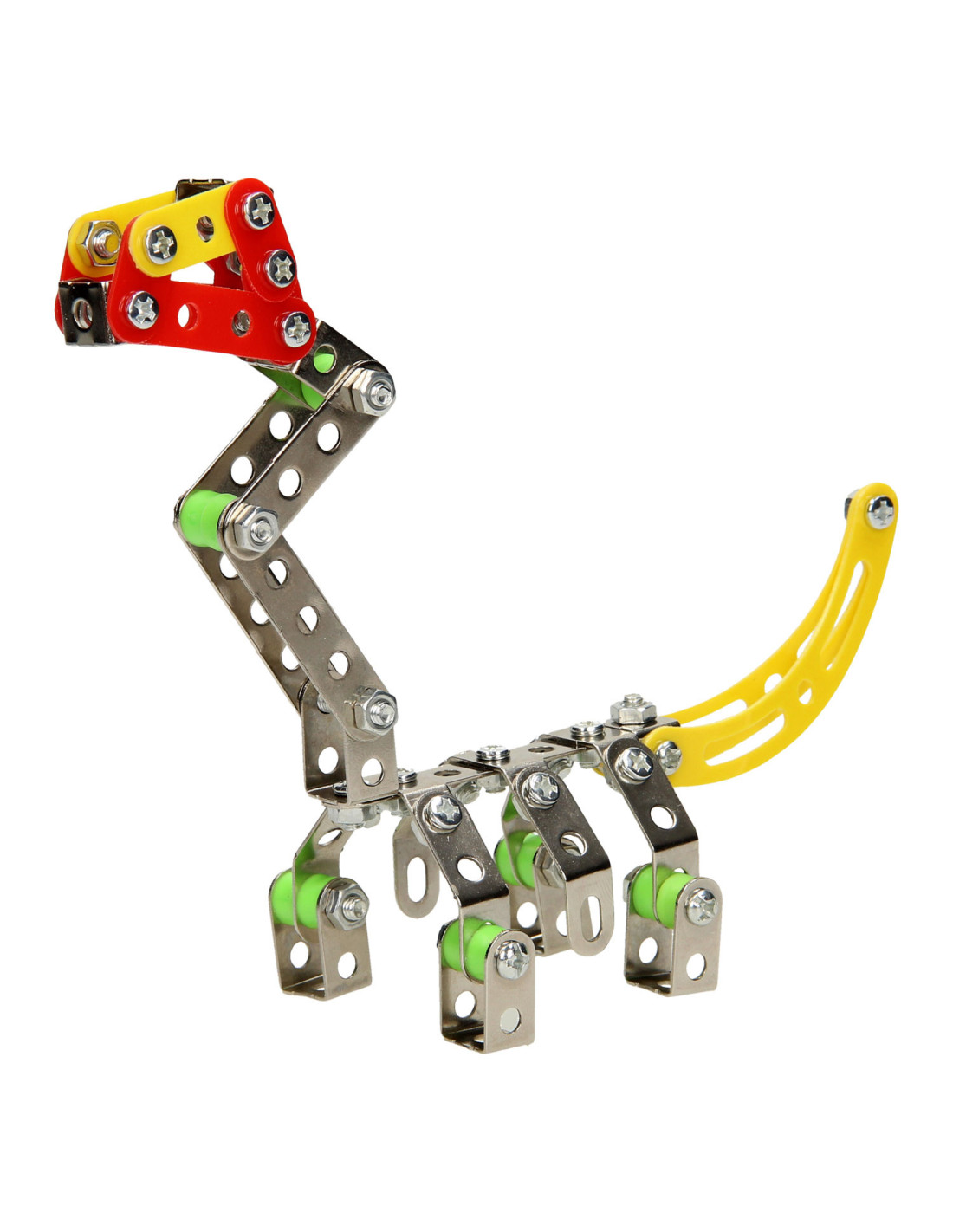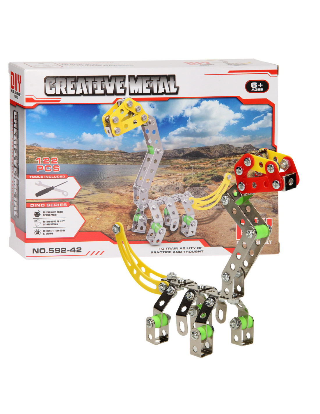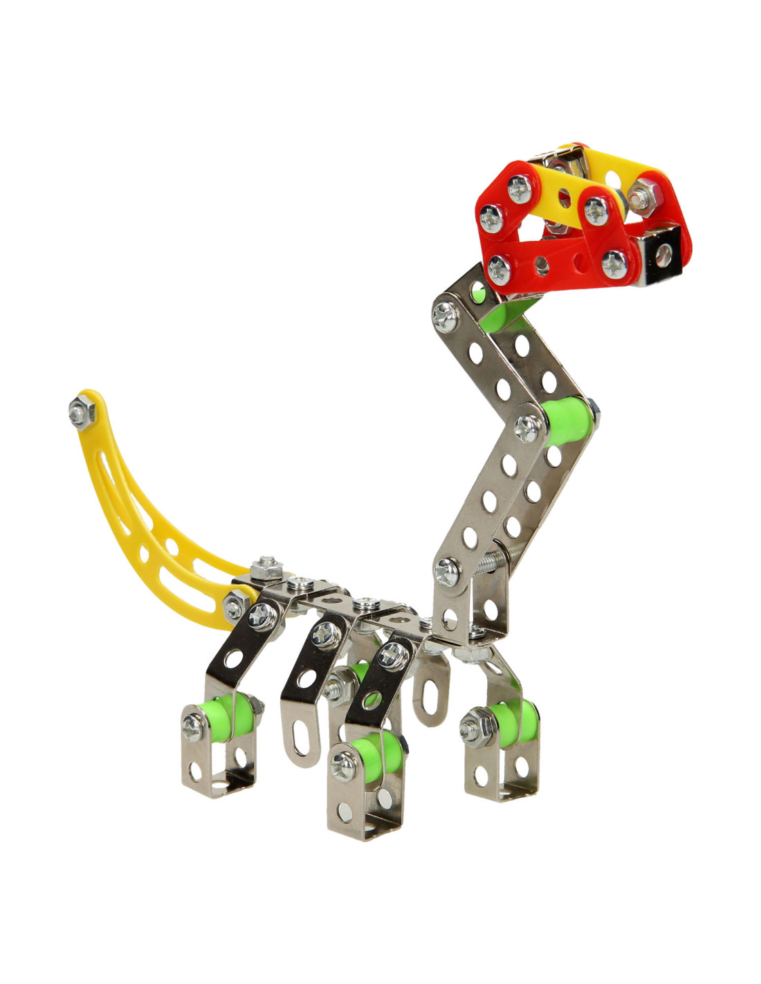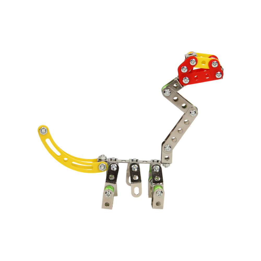 Ga de uitdaging aan en bouw je eigen dino met deze metalen constructieset bestaande uit 122 onderdelen. Monteer de onderdelen van metaal en stevig kunststof aan elkaar en speel daarna de spannende dino avonturen na. Inclusief montagegereedschap.