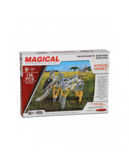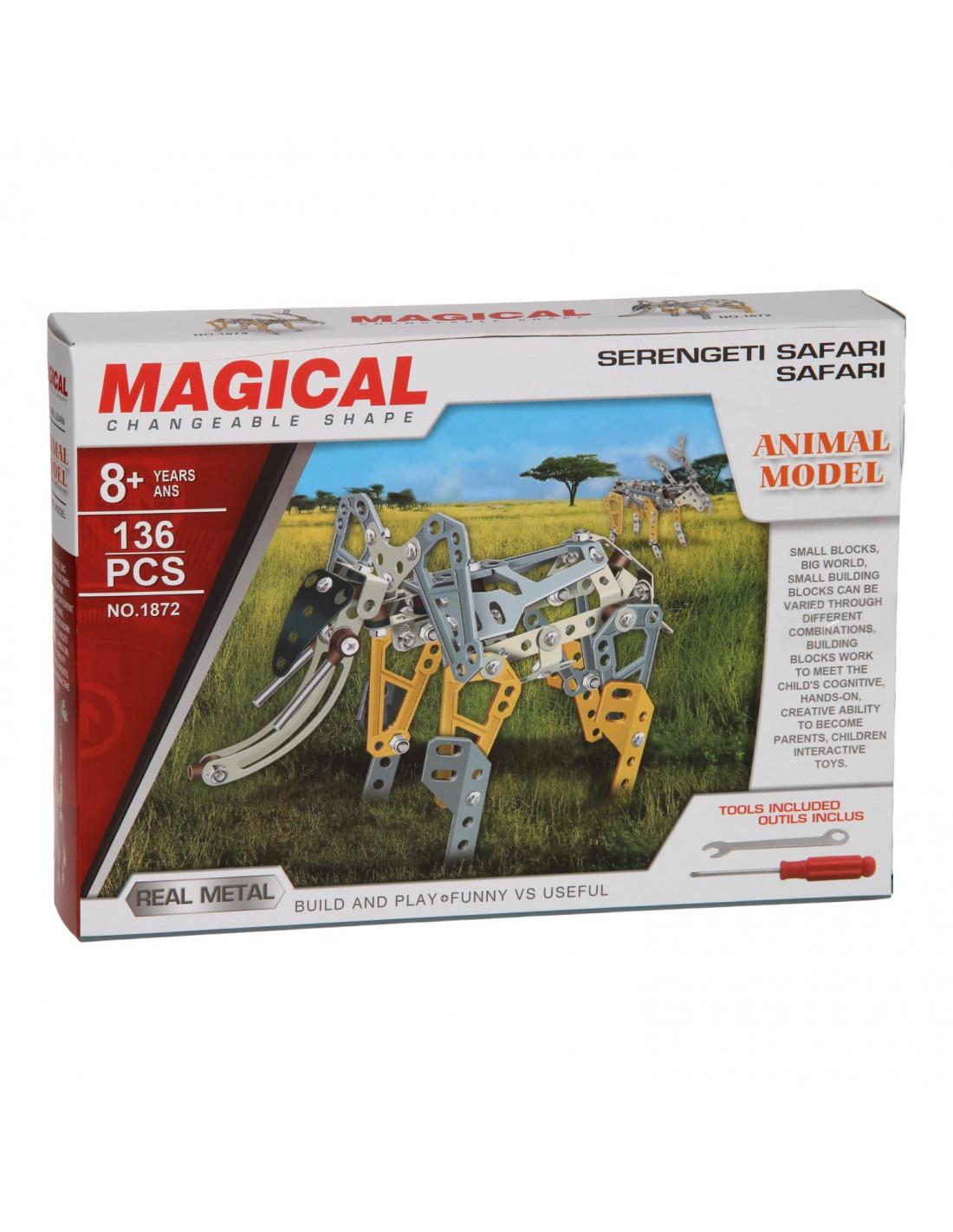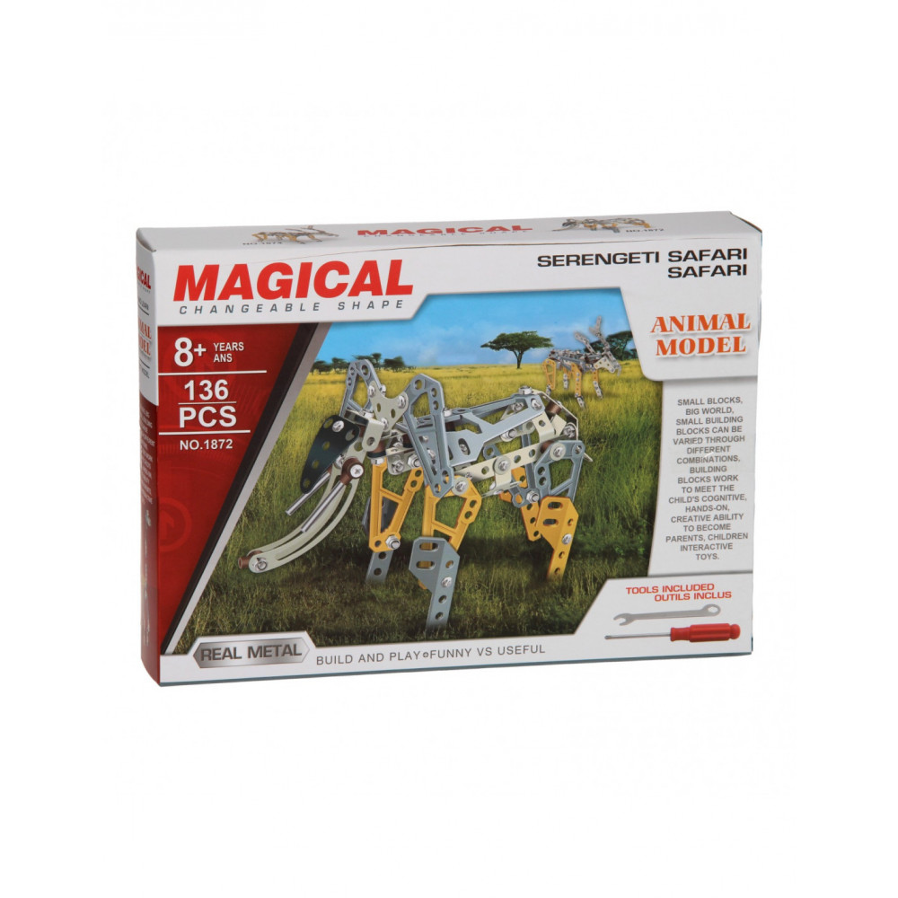 Met de metalen Constructieset bouw je een olifant! De bouwset bestaat uit 145 onderdelen waarmee je aan de hand van een 13-stappenplan een olifant in elkaar zet. De metalen Constructieset Olifant is inclusief gereedschap.
