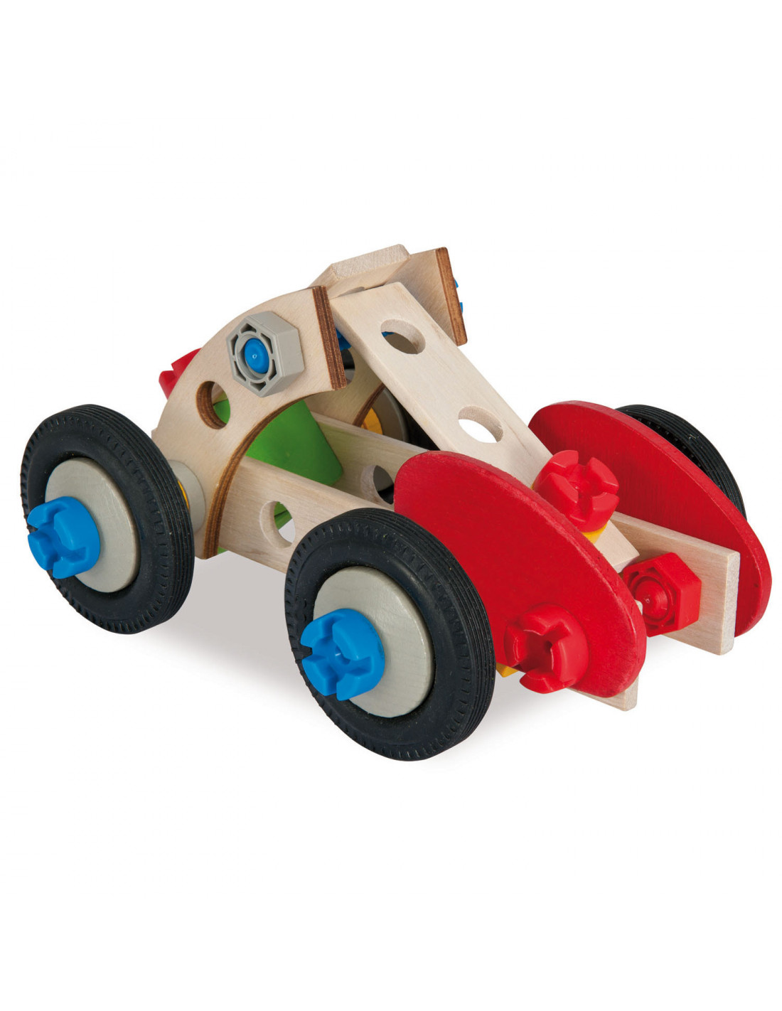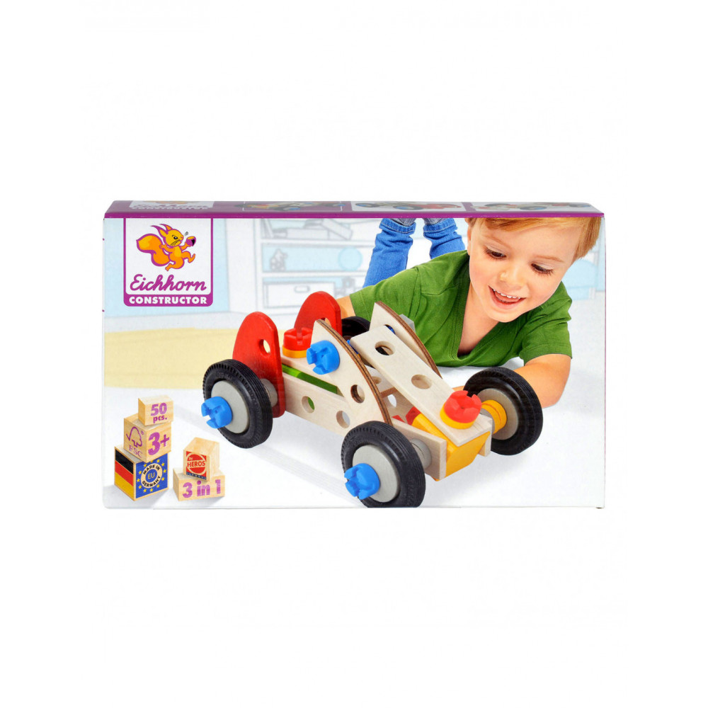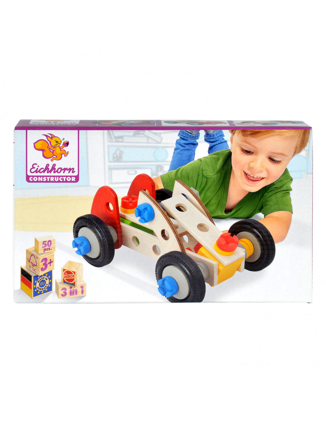 Maak je eigen voertuigen met deze 3in1 constructieset van Eichhorn. Monteer de 50 vrolijk gekleurde onderdelen van zowel hout als stevig kunststof aan elkaar en creëer de stoerste voertuigen. Met de robuuste wielen maak je de stoere voertuigen compleet. Eichhorn stimuleert de ontwikkeling van de fantasie en de fijne motoriek.