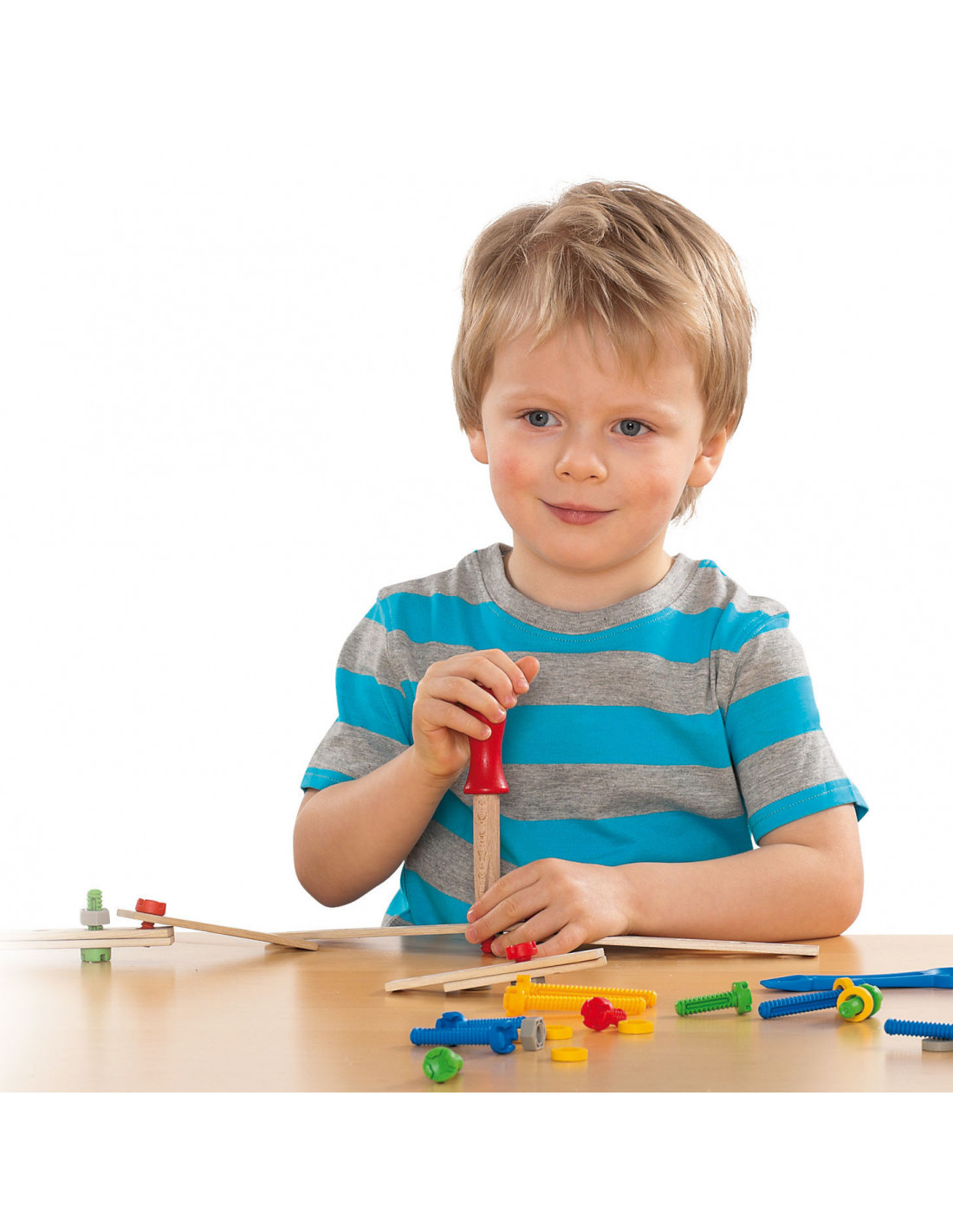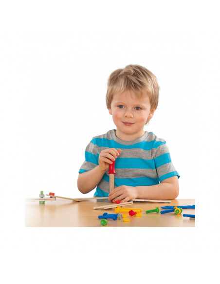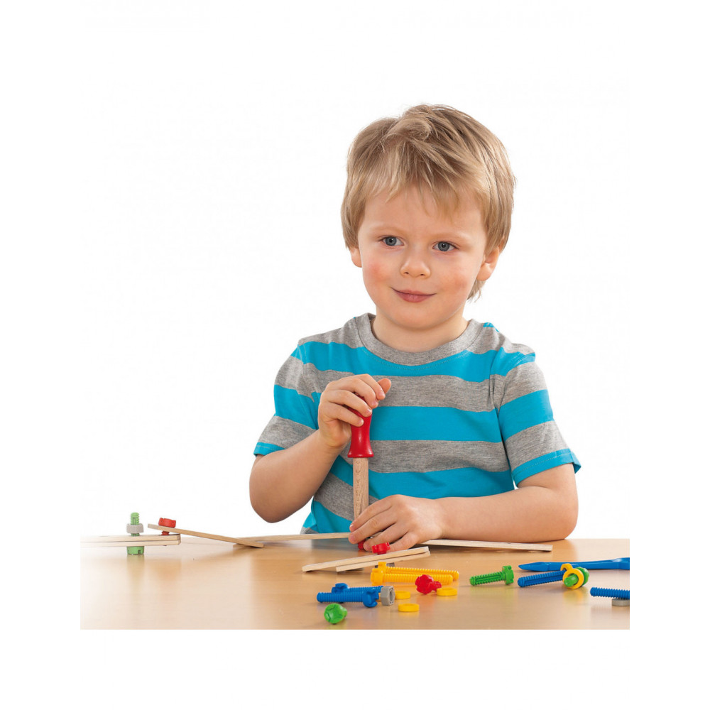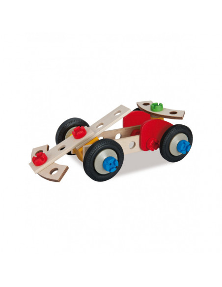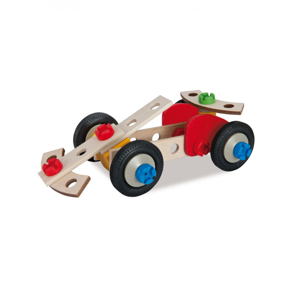 Maak je eigen voertuigen met deze 3in1 constructieset van Eichhorn. Monteer de 50 vrolijk gekleurde onderdelen van zowel hout als stevig kunststof aan elkaar en creëer de stoerste voertuigen. Met de robuuste wielen maak je de stoere voertuigen compleet. Eichhorn stimuleert de ontwikkeling van de fantasie en de fijne motoriek.