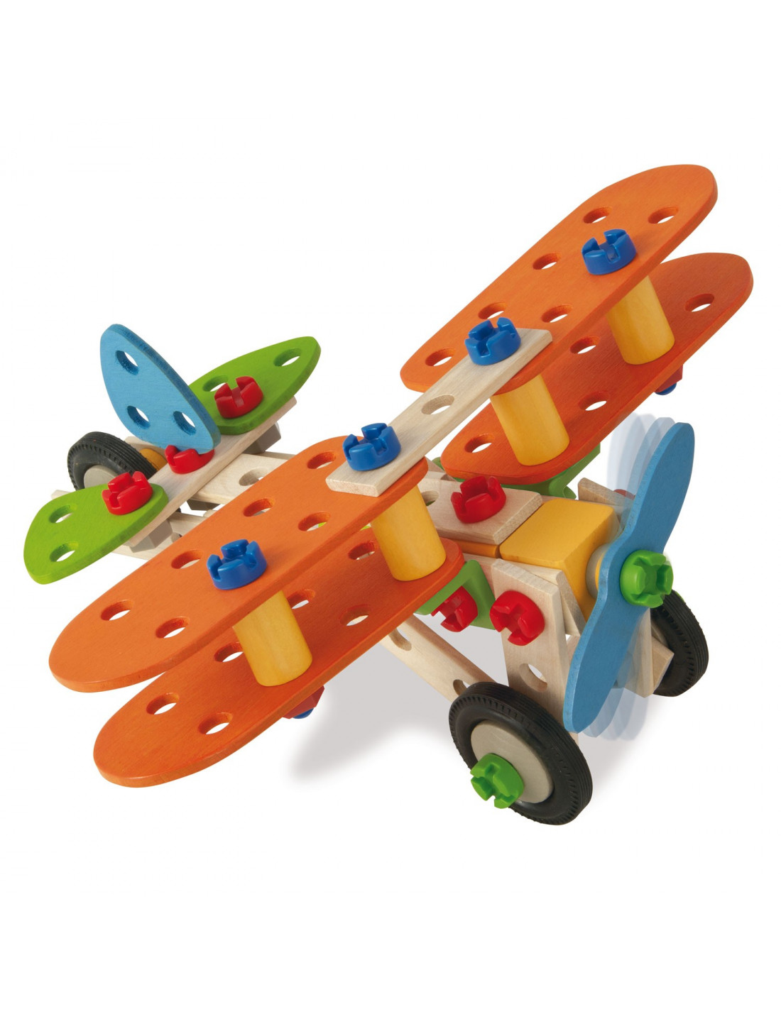 Maak je eigen vliegtuig, helikopter, straaljager of motor met deze 4 in 1 constructieset van Eichhorn. De set bestaat uit 85 onderdelen van zowel hout als stevig kunststof. Stimuleert de hang-oog coördinatie en de ontwikkeling van de motoriek. Geschikt vanaf 4 jaar.