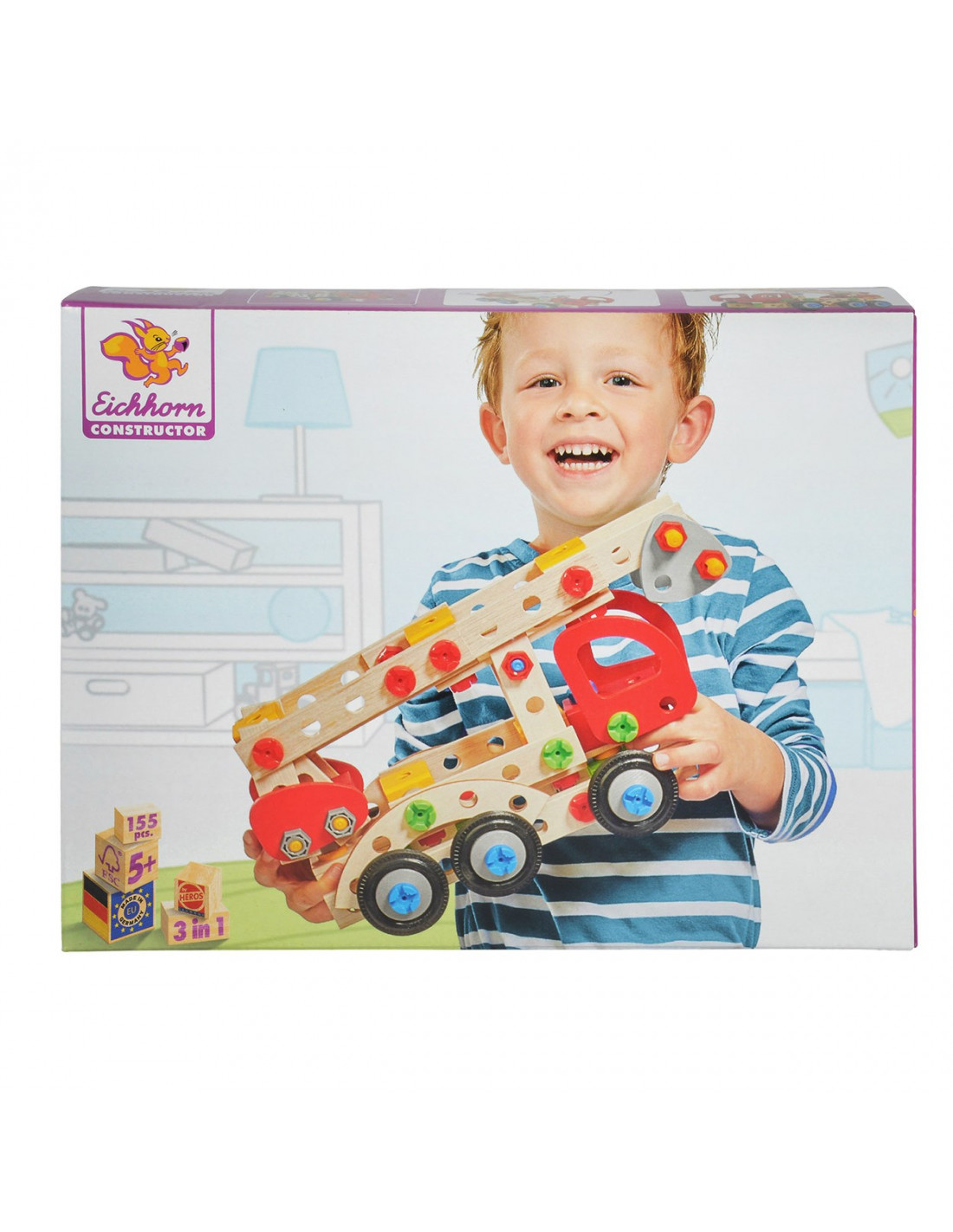 Maak je eigen hulp voertuigen met deze 3in1 constructieset van Eichhhorn. Monteer de 155 vrolijk gekleurde onderdelen van zowel hout als stevig kunststof aan elkaar en creëer de gaafste hulpvoertuigen. De Eichhorn constructieset stimuleert de fantasie en de fijne motoriek.