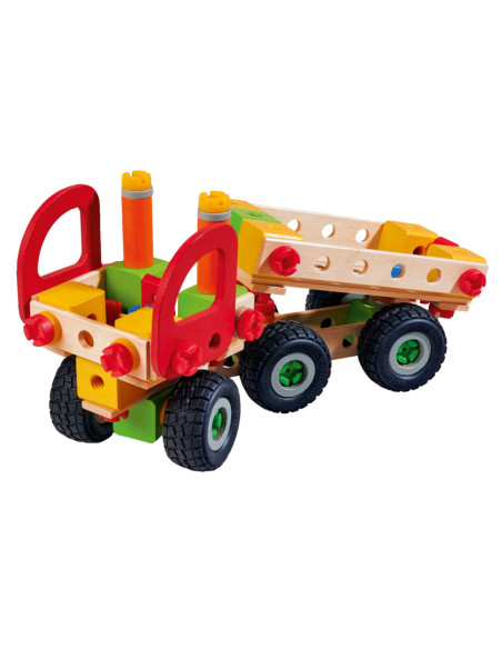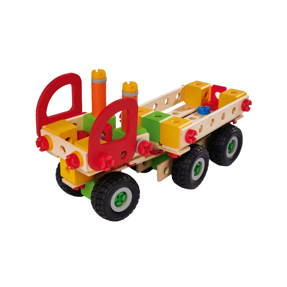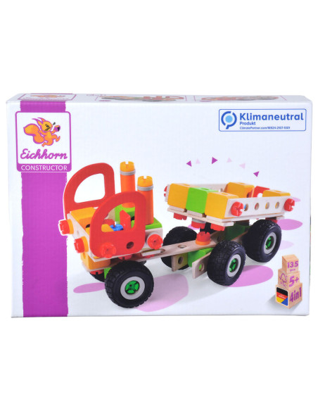 Eichhorn Constructor-trucks: bouw een van de 4 geweldige modellen uit de 135-delige Eichhorn Constructor-set! Met behulp van het bijgeleverde gereedschap, de instructies en de schroeven worden de houten delen en verbindingselementen aan elkaar bevestigd en ontstaat één van de modellen. Door ze in elkaar te zetten, wordt het ruimtelijk denken en de fijne motoriek gestimuleerd en getraind. De modelvarianten in deze set: vrachtwagen, pick-up, kipper en bestelwagen. Gemaakt van 100% FSC®-hout uit duurzame bosbouw. Geschikt voor kinderen vanaf 5 jaar. Dit Eichhorn-artikel is gemaakt in Duitsland en is klimaatneutraal.