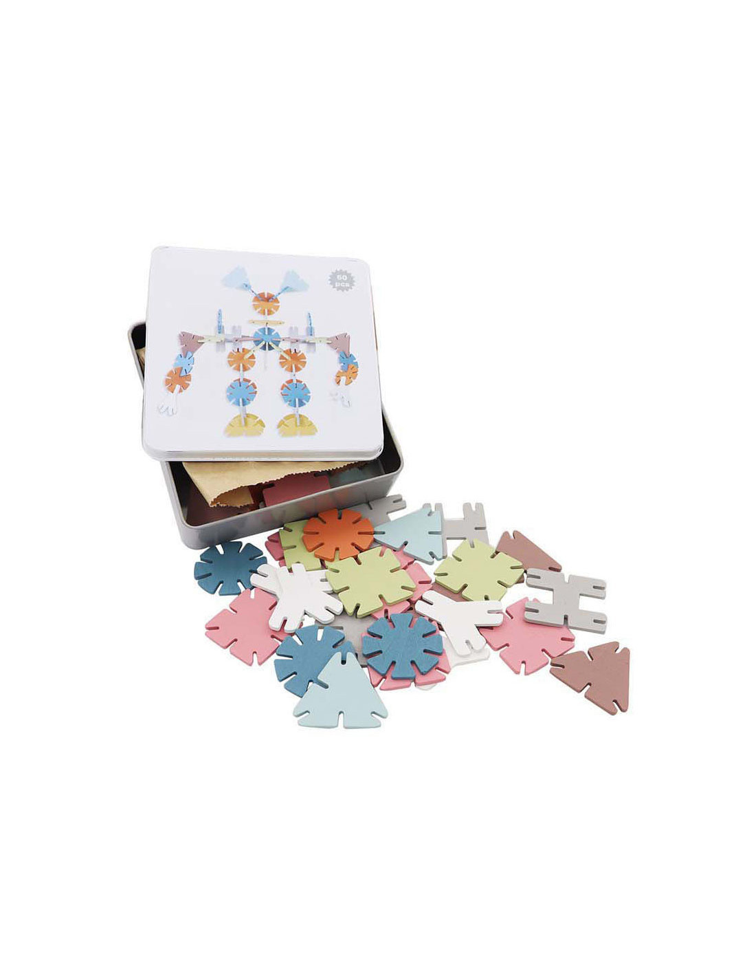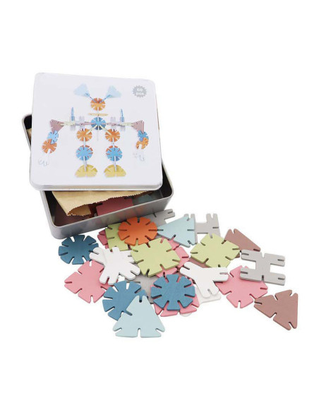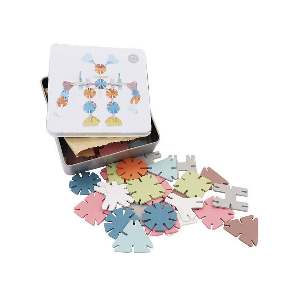 Bouw de mooiste kunstwerken met deze bouwset met geometrisch gevormde houten bouwstenen. In de set zitten 60 bouwstenen in verschillende kleuren, vormen en formaten. Laat je fantasie de vrije loop en bouw allerlei verschillende bouwwerken!