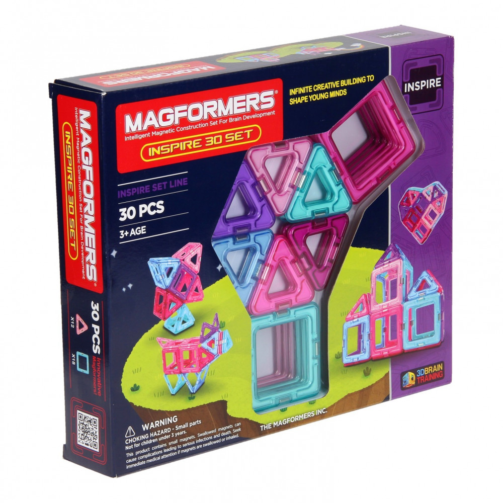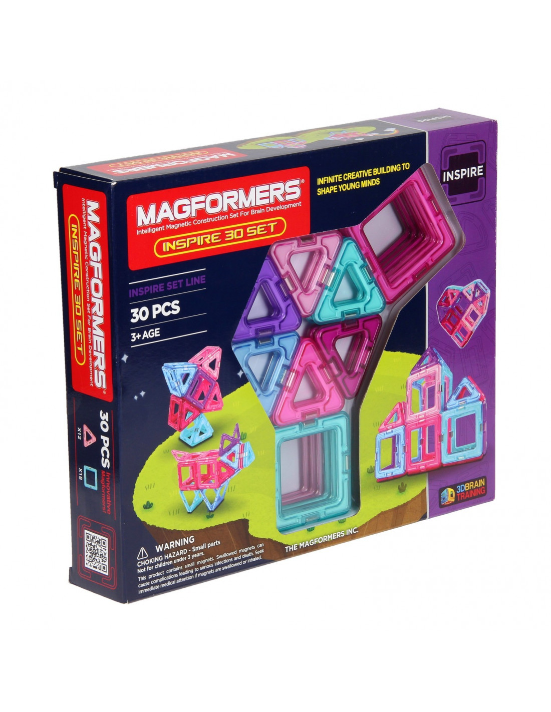 Laat je fantasie de vrije loop met deze roze met paarse Magformers! Ontwerp 2D patronen en trek ze omhoog in allerlei verschillende 3D constructies. De kleurrijke Magformers klikken met de sterke magneetjes altijd tegen elkaar. Maak dus de mooiste, dieren, hartjes en 'magic balls'. Gebruik de patronen uit het boekje, de online video's of bedenk zelf de mooiste ontwerpen. Met deze 30-delige set heb je uren speelplezier. Deze set is een goede basis als begin!