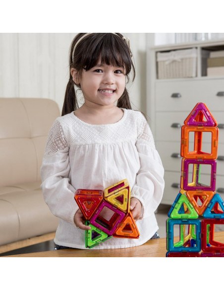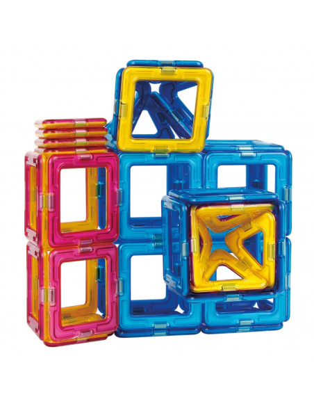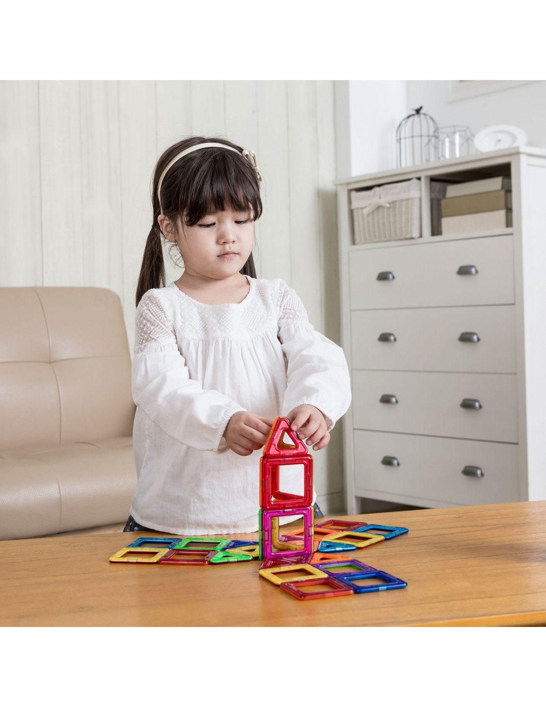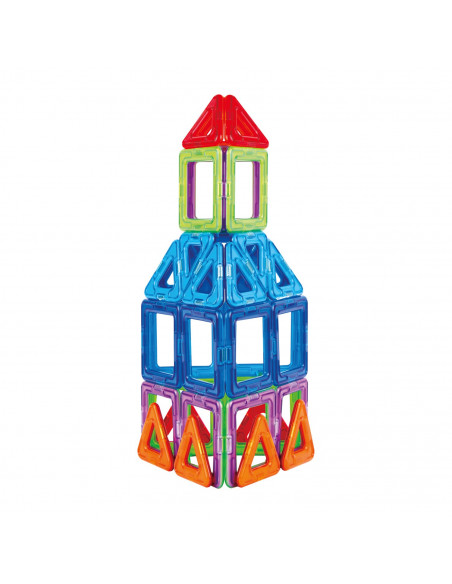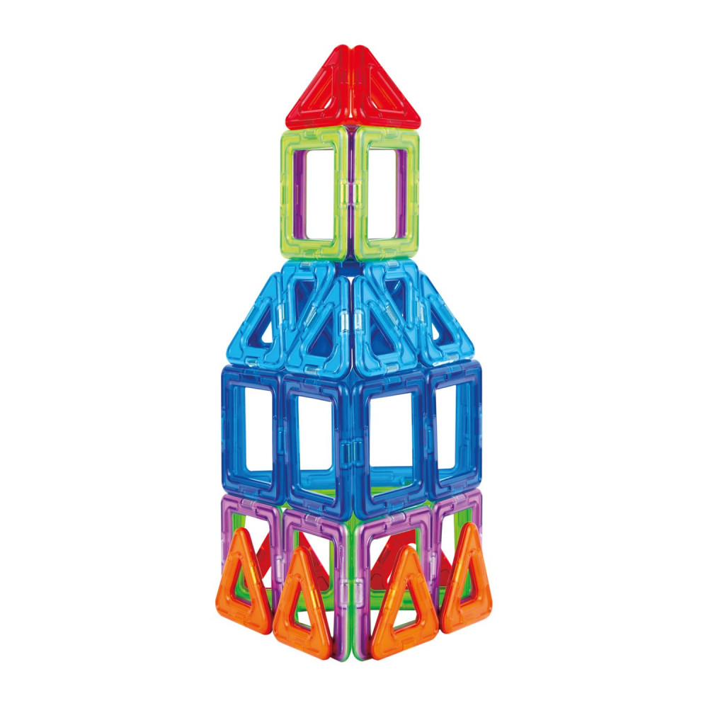 Magformers 50 Set is het ultieme bewijs dat je met basisvormen erg veel kan bouwen. Deze driehoekige en vierkante speelgoed magneten in vrolijke kleuren zijn het perfecte educatief speelgoed. Ze bevorderen de motorische ontwikkeling, stimuleren de creativiteit én trainen de hersenen. Magformers is geschikt voor kinderen vanaf 3 jaar. Met dit starterspak maak je prachtige modellen in 2D en 3D. Gebruik je eigen fantasie of laat je inspireren door het meegeleverde boekje. Spelend leren was nog nooit zo leuk!