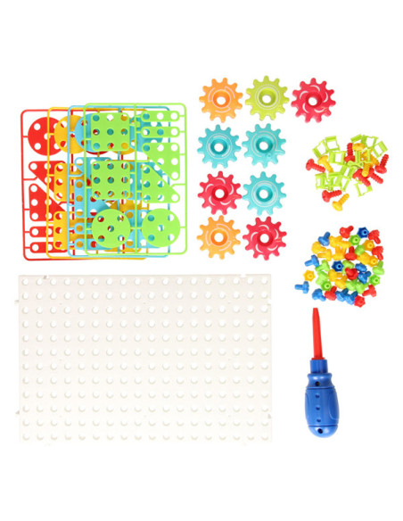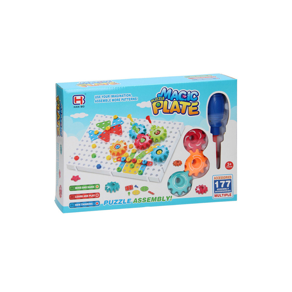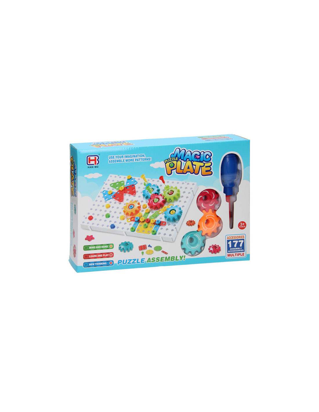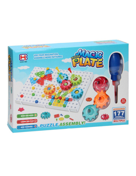 Maak een puzzel van schroeven en tandwielen met deze magische puzzel! Met 177 onderdelen. Geschikt voor kinderen vanaf 3 jaar oud. Afmeting: 31 bij 5,8 bij 22 centimeter.