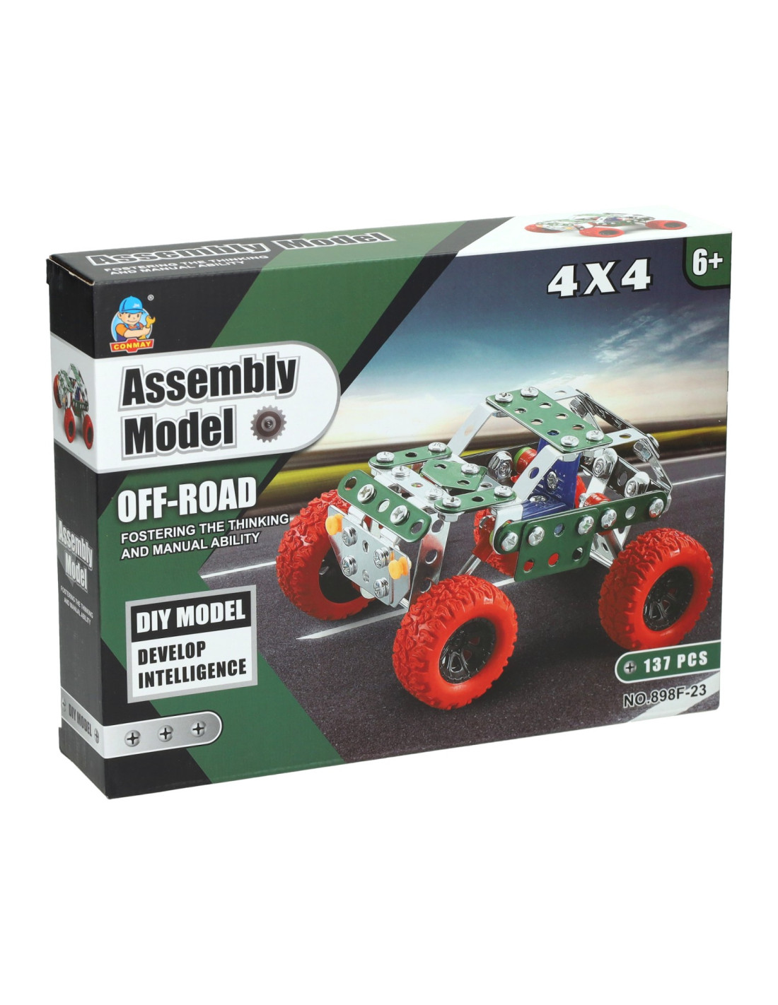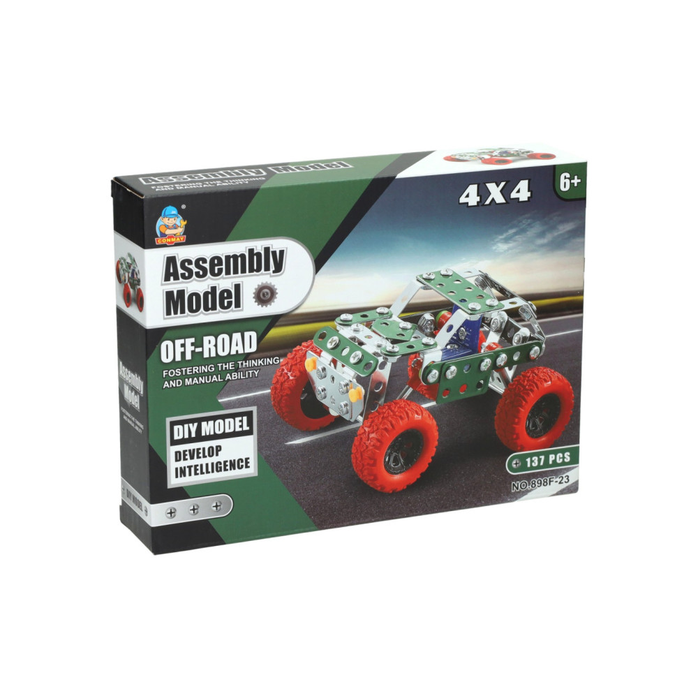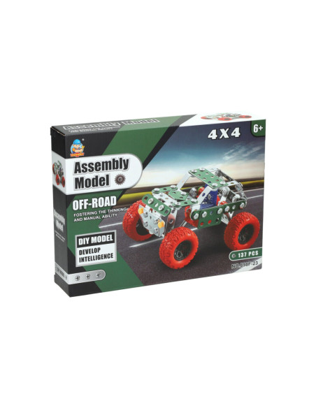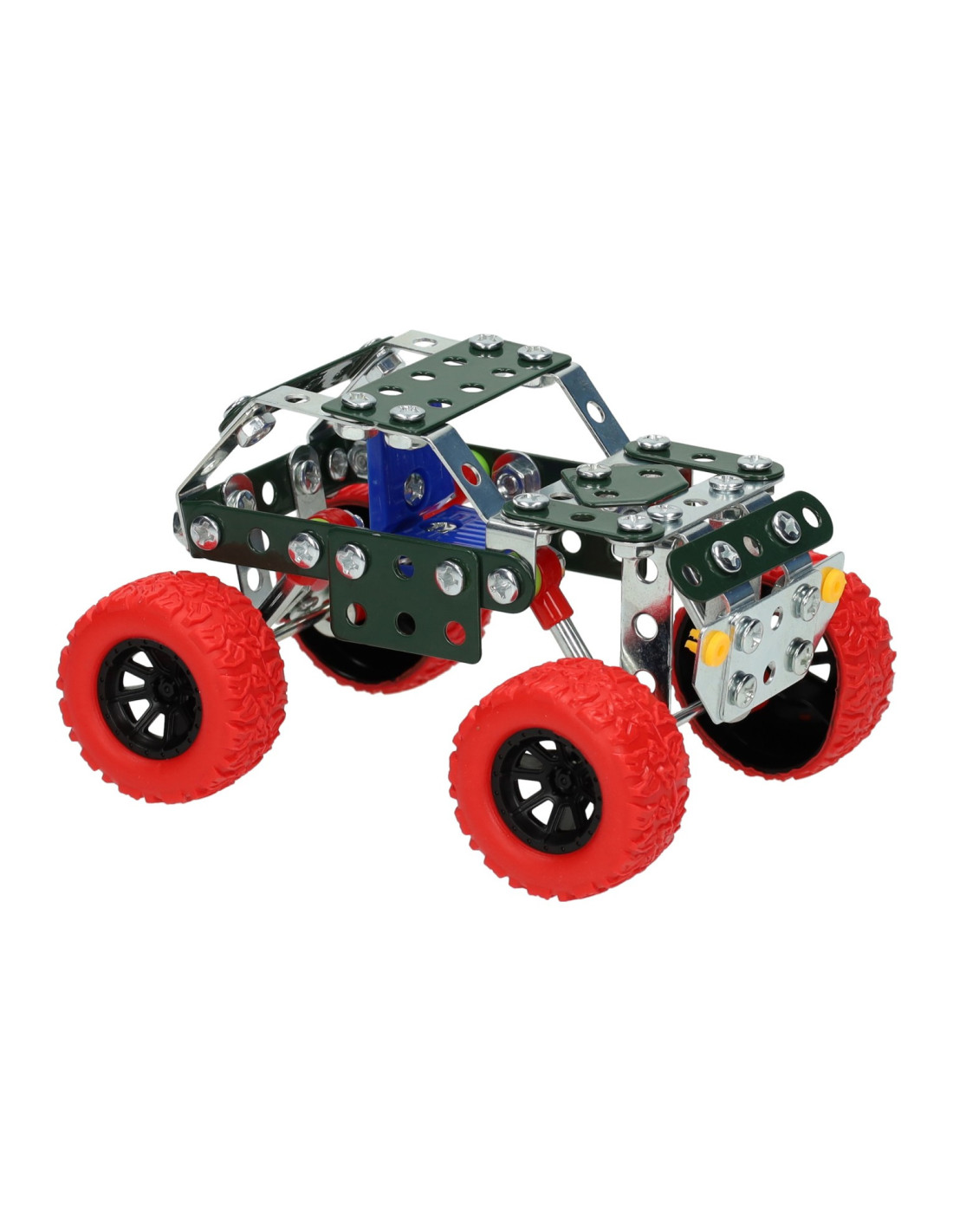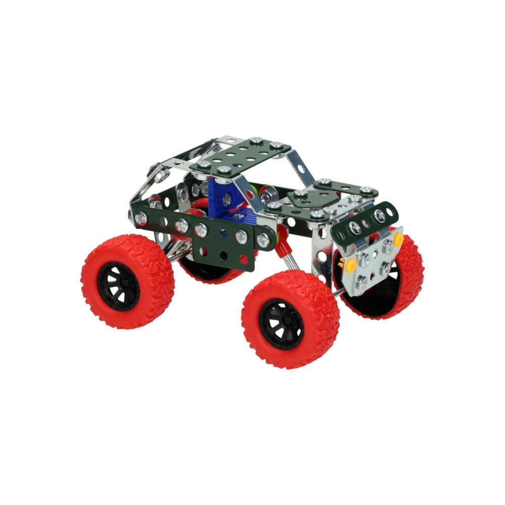 Bouw deze stoere terreinwagen gemaakt van metaal met deze bouwset. De bouwset bestaat uit 137 onderdelen en is geschikt voor kinderen vanaf 6 jaar.