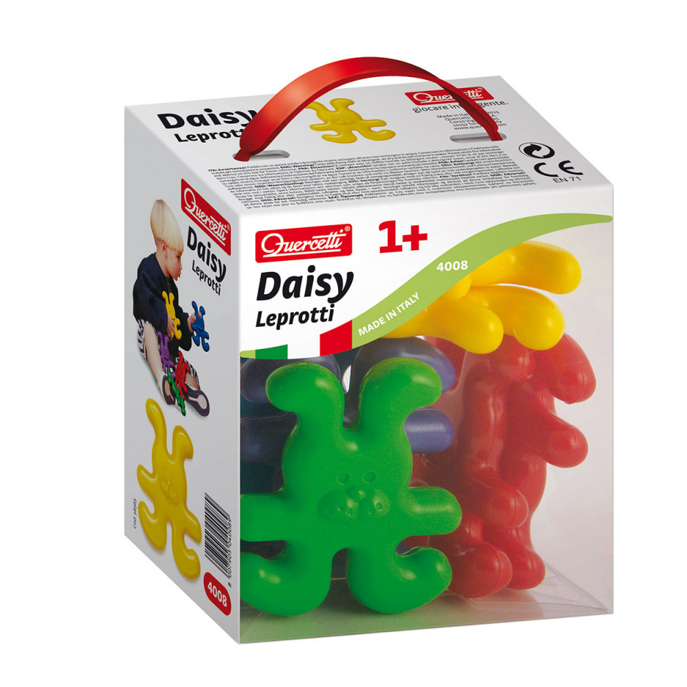 Deze Quercetti lichte en kleurrijke in elkaar grijpende haasjes zijn er in 6 verschillende kleuren. Maak er een lange ketting van.