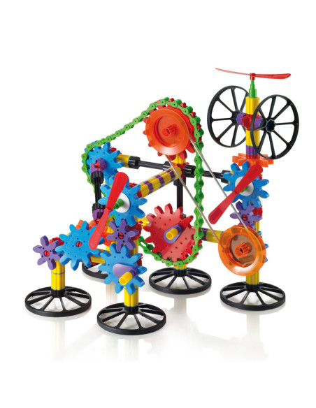 Met deze ingenieuze Quercetti constructie set kun je de losse stukken op verschillende manieren met elkaar verbinden. De set bestaat uit 266 onderdelen, waaronder tandwielen in verschillende kleuren en maten, een ketting, elastische band en propellers. Door middel van de meegeleverde ketting en elastische band kun je nog meer bijzondere, technologische structuren bouwen. Onbeperkte mogelijkheden en plezier! Geschikt voor kinderen vanaf 5 jaar.
