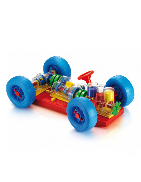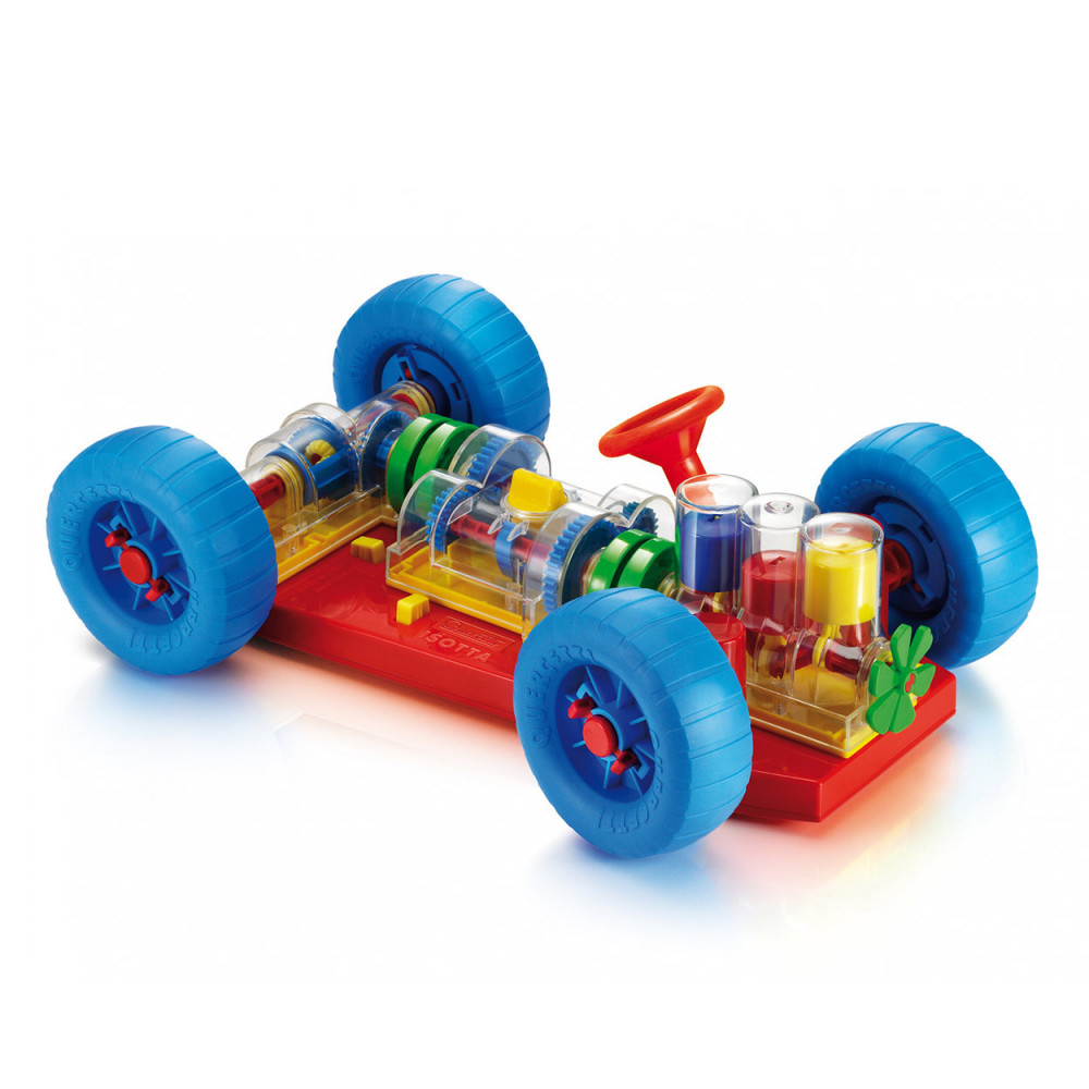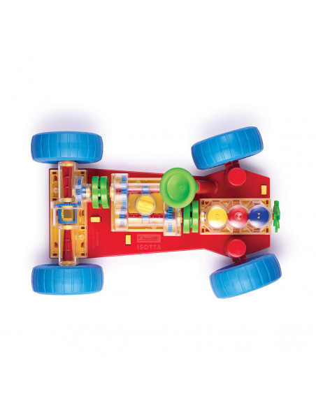 Duw de auto en je krijgt te zien hoe de zuigers, drijfstangen en tandwielen bewegen.