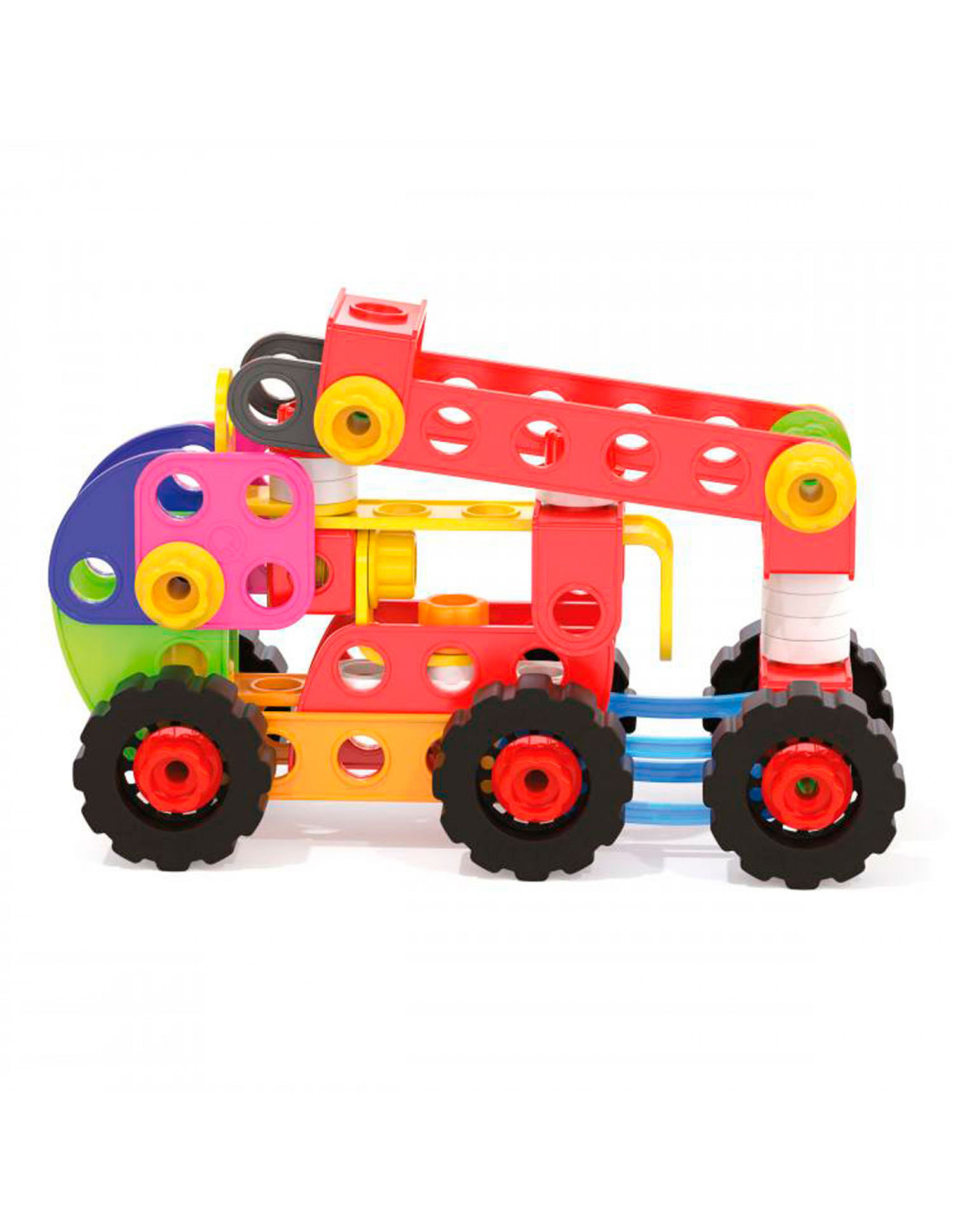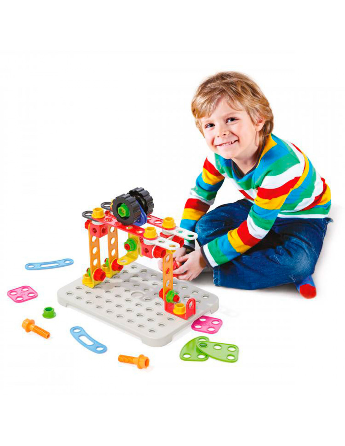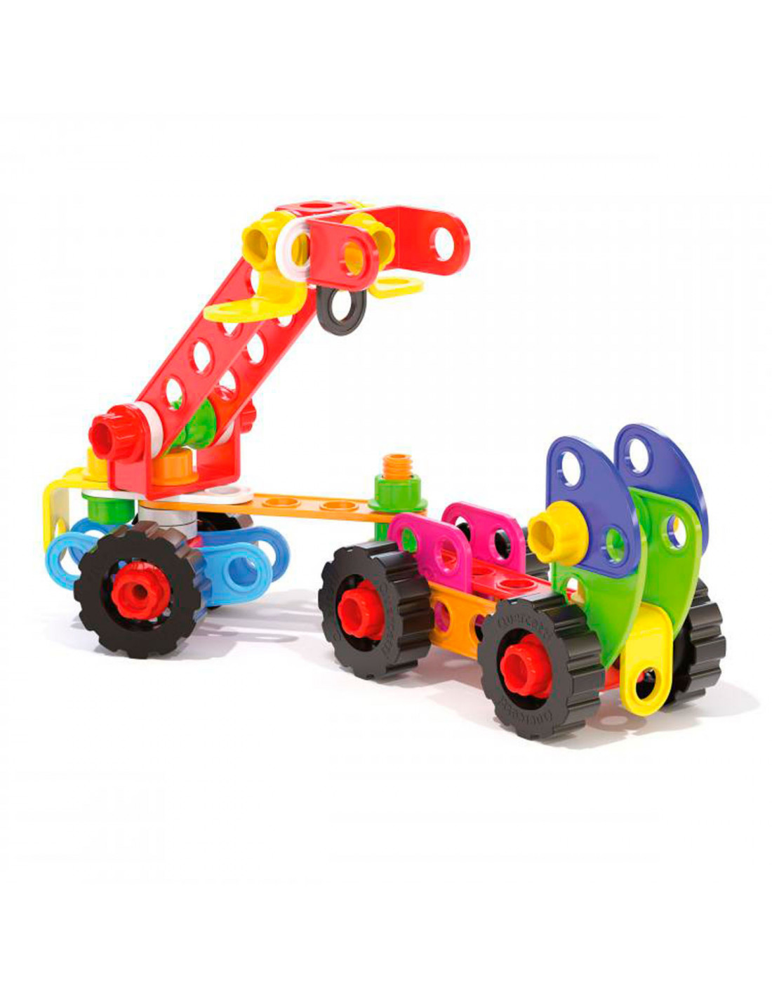 Deze Quercetti-set heeft alles wat een kind nodig heeft om trucks, graafmachines, kranen of fantasiefiguren te maken. Schroeven, bouten, vleugelmoeren, wielen en geperforeerde platen kunnen zonder speciaal gereedschap worden gemonteerd. De onderdelen zijn gemaakt van onbreekbaar kunststof. Zijn de kinderen uitgespeeld? Dan past alles in de handige opberggereedschapskist. Dit bouwspeelgoed stimuleert coördinatie, logica, creativiteit en helpt kinderen basisprincipes van mechanica te begrijpen terwijl ze zich amuseren.