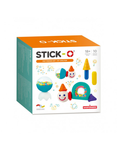 Ontdek de magie van dit magnetische speelgoed! Bouw je eigen gekker figuurtjes met deze Stick-O Pop Friends Set. Met de 10 elementen in deze set bouw je een grappige kabouter, rammelaar, boompje,… De constructies prikkelen de creativiteit en de verbeelding van kinderen vanaf 1.5 jaar. In deze set zit een bouwboekje bij, maar niets houdt je tegen om je eigen constructies te bouwen. De Stick-O Pop Friends Set is goed voor uren speelplezier en is combineerbaar met gelijkaardig magnetisch speelgoed.