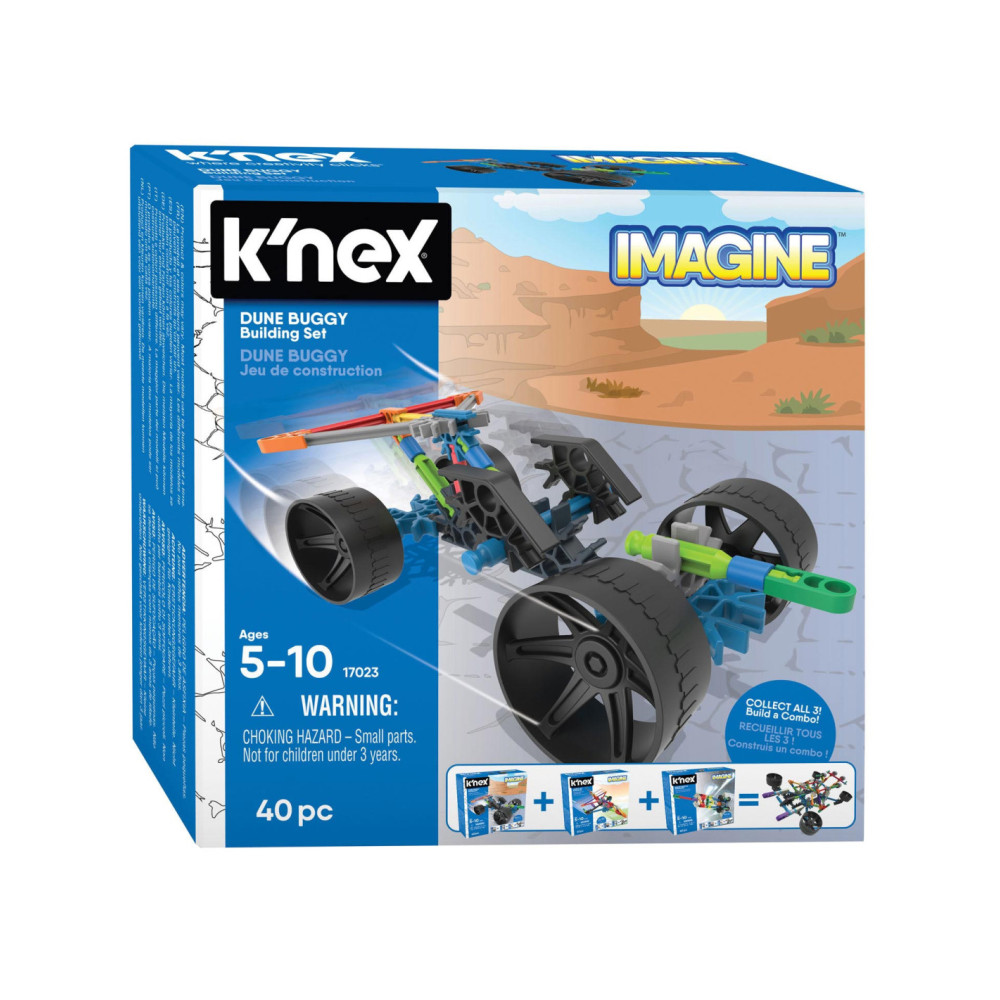 Bouw nu je eigen K'NEX Dune Buggy en race ermee over de zandduinen! Bouwen met K'NEX is niet alleen ontzettend leuk en uitdagend om te doen, maar hier heb je ook nog eens uren speelplezier mee. Het bouwen met K'Nex stimuleert de ontwikkeling van de motoriek, de coördinatie en het ruimtelijk inzicht. Bij de bouwset zitten maar liefst 40 onderdelen. Geschikt vanaf 5 jaar.