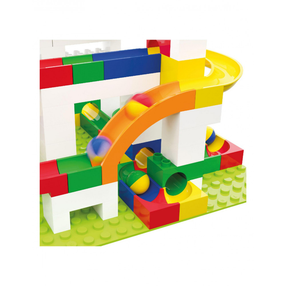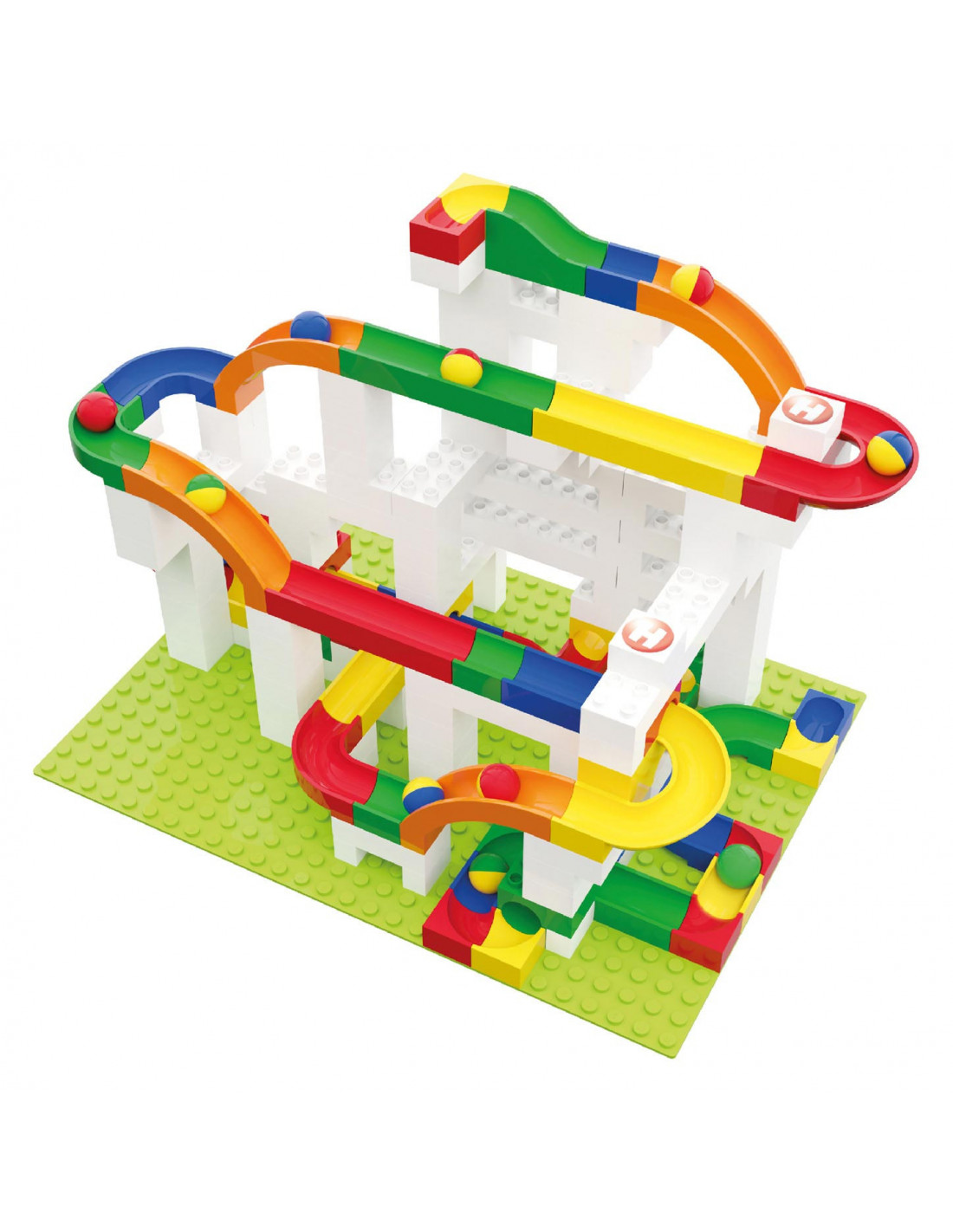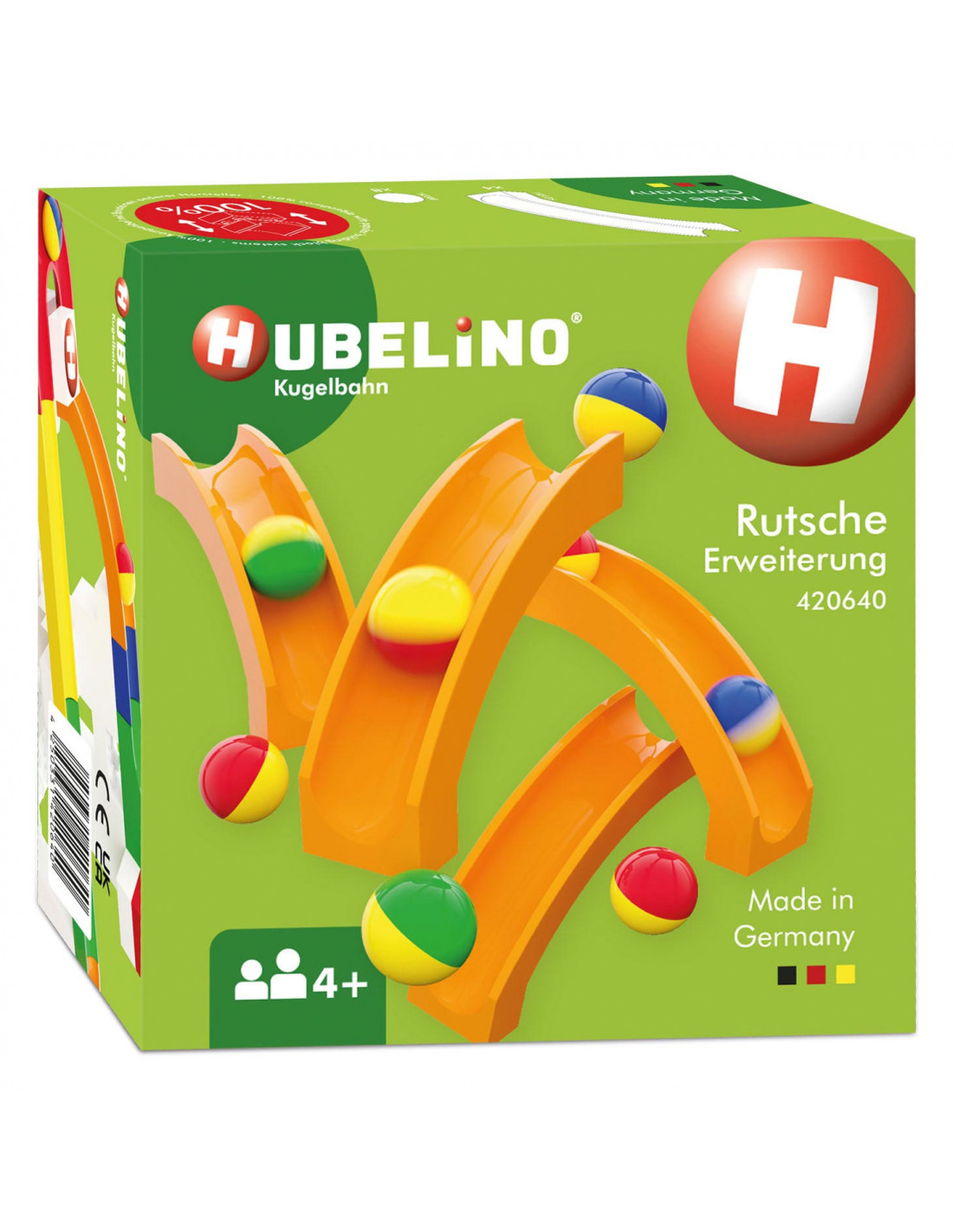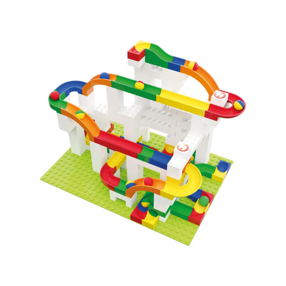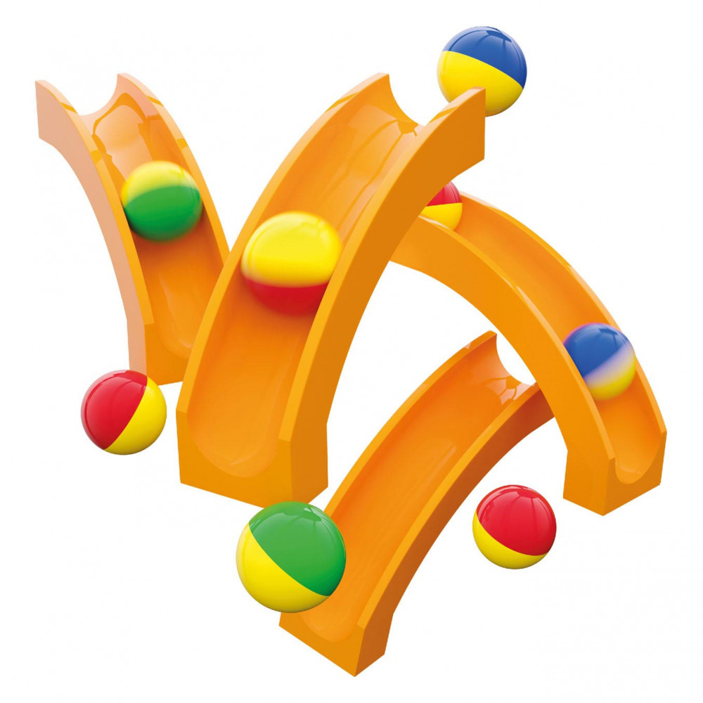 Glijbaandelenset van Hubelino, 4 glijbaandelen en 8 knikkers.