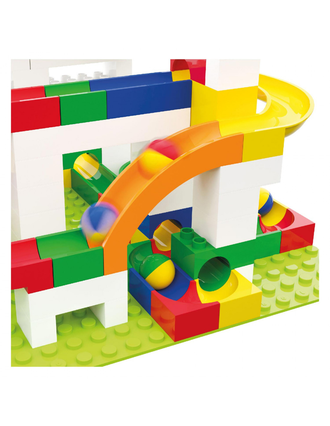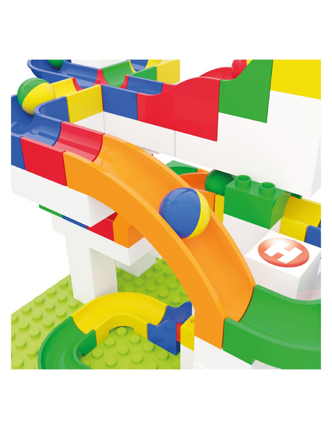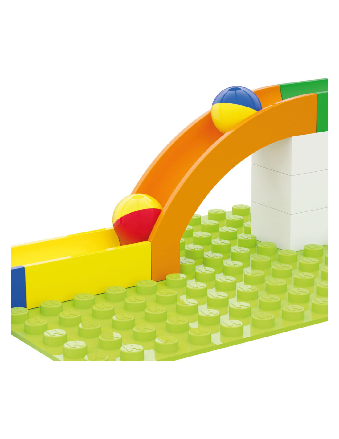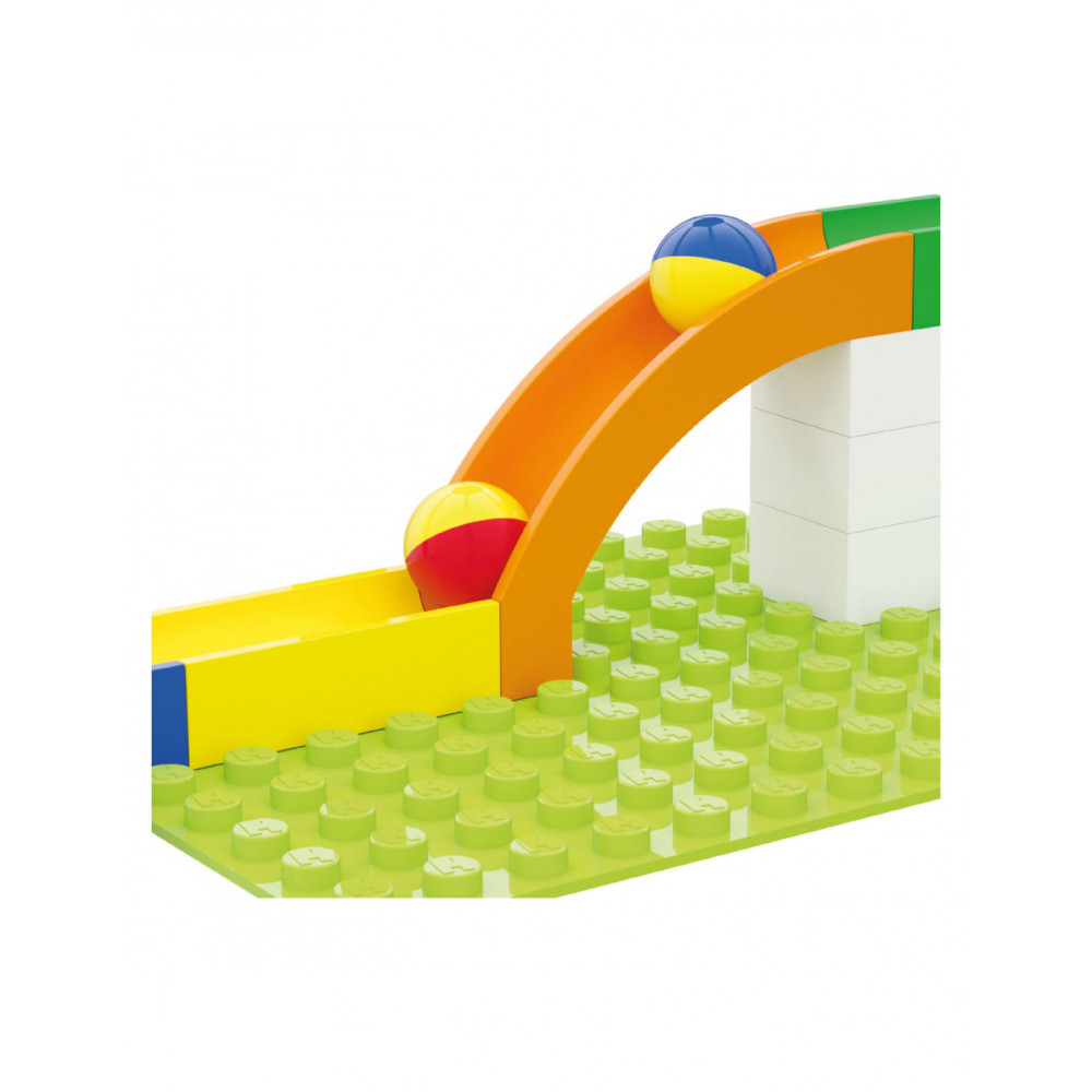 Glijbaandelenset van Hubelino, 4 glijbaandelen en 8 knikkers.
