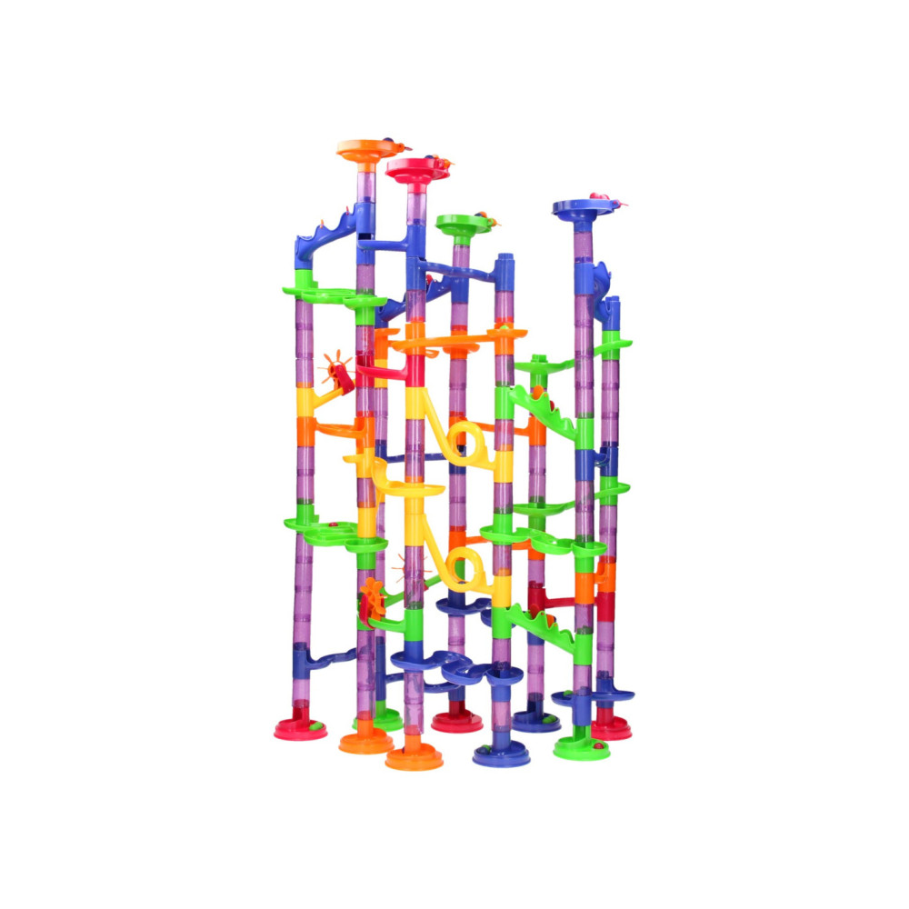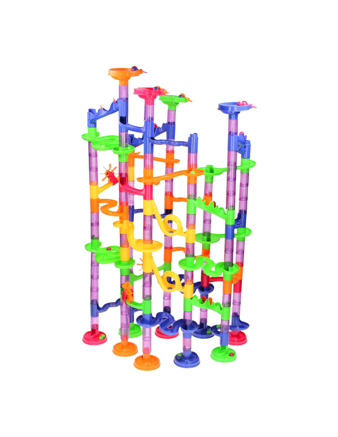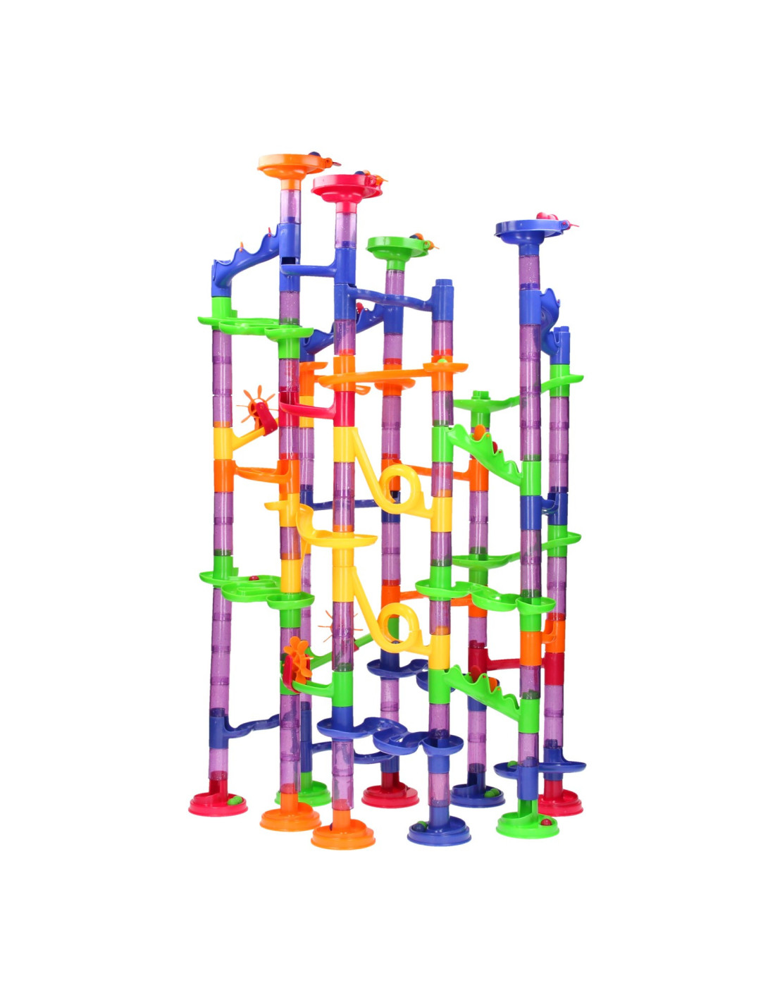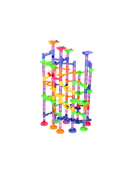 Maak een spectaculaire knikkerbaan met deze megaset. Bouw de spannende baan van het voorbeeld na of laat je fantasie de vrije loop en creëer je eigen ontwerp. Met de 150 verschillende onderdelen creëer je eindeloos veel verschillende banen. Onderdelen zoals snelle spiralen, loopings, ratelende bochten en transparante glitterbuizen maken van elke baan een avontuur. De megaset is gemaakt van stevig kunststof. Inclusief geïllustreerde instructies en knikkers.