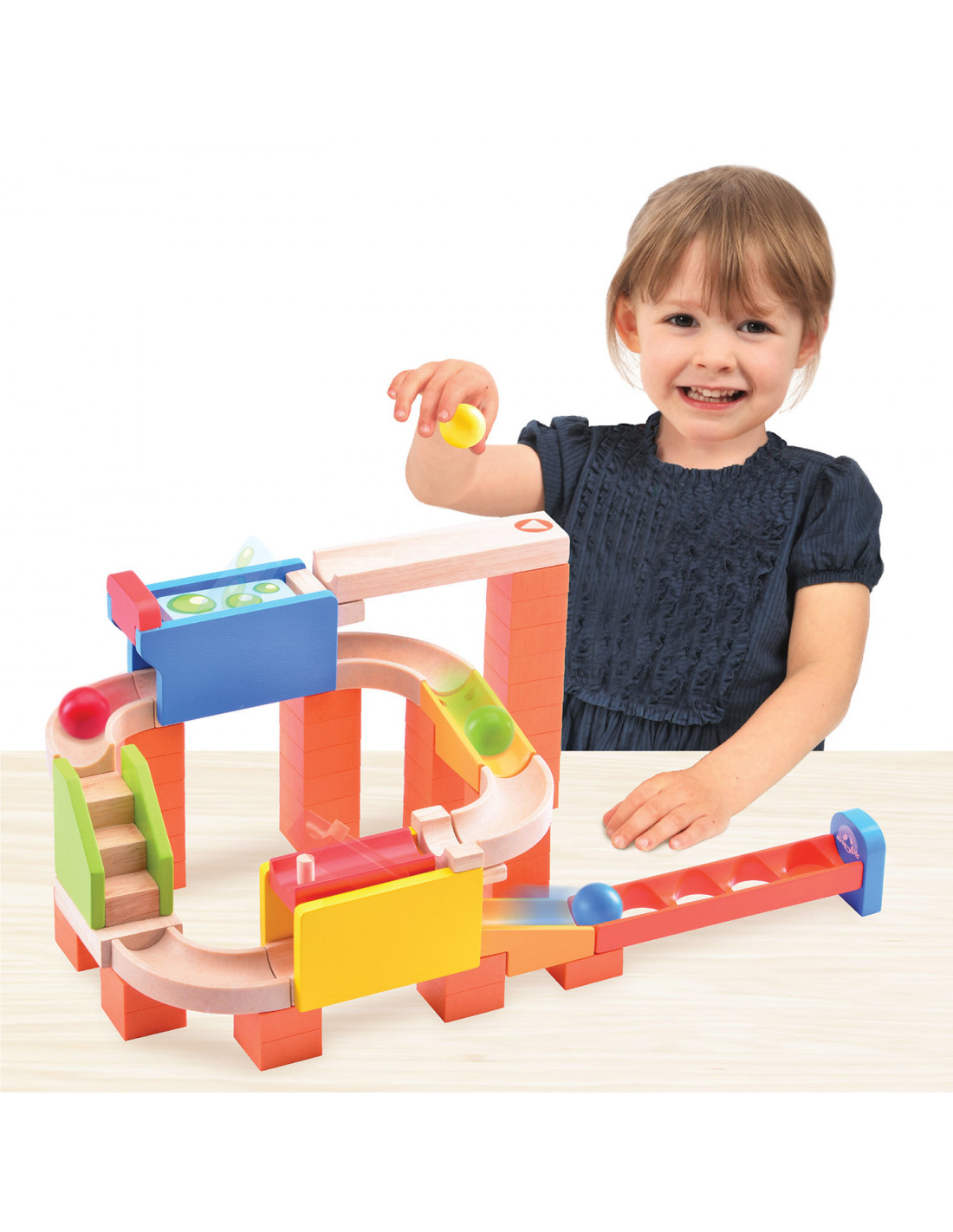 Leg de ballen op de knikkerbaan, laat ze door de flipper gaan en zie hoe ze allemaal hun eigen weg naar beneden volgen. Met 56 onderdelen, waaronder 4 ballen. Vanaf 3 jaar.